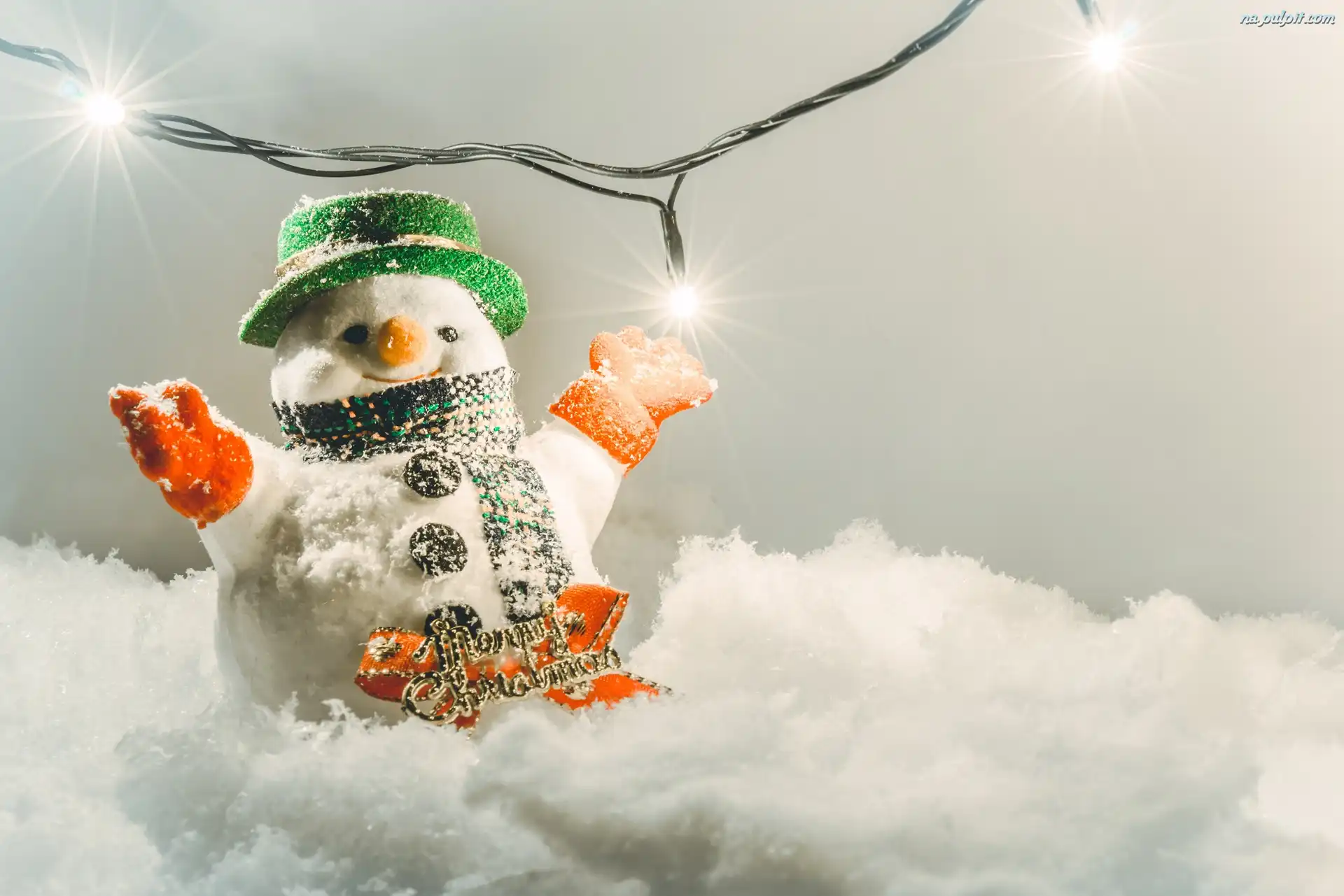 Światełka, Śnieg, Boże Narodzenie, Napis, Bałwanek Na Pulpit