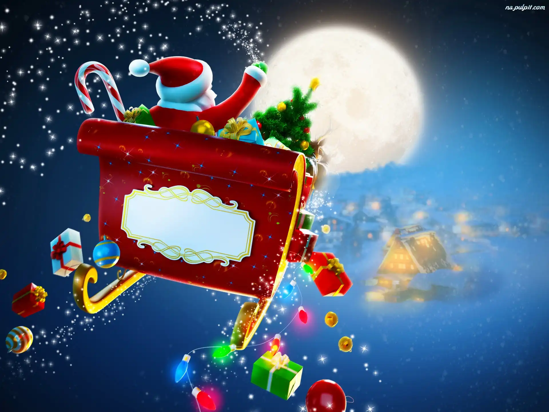 Światełka, Mikołaj, Sanie, Boże Narodzenie, Prezenty Na Pulpit