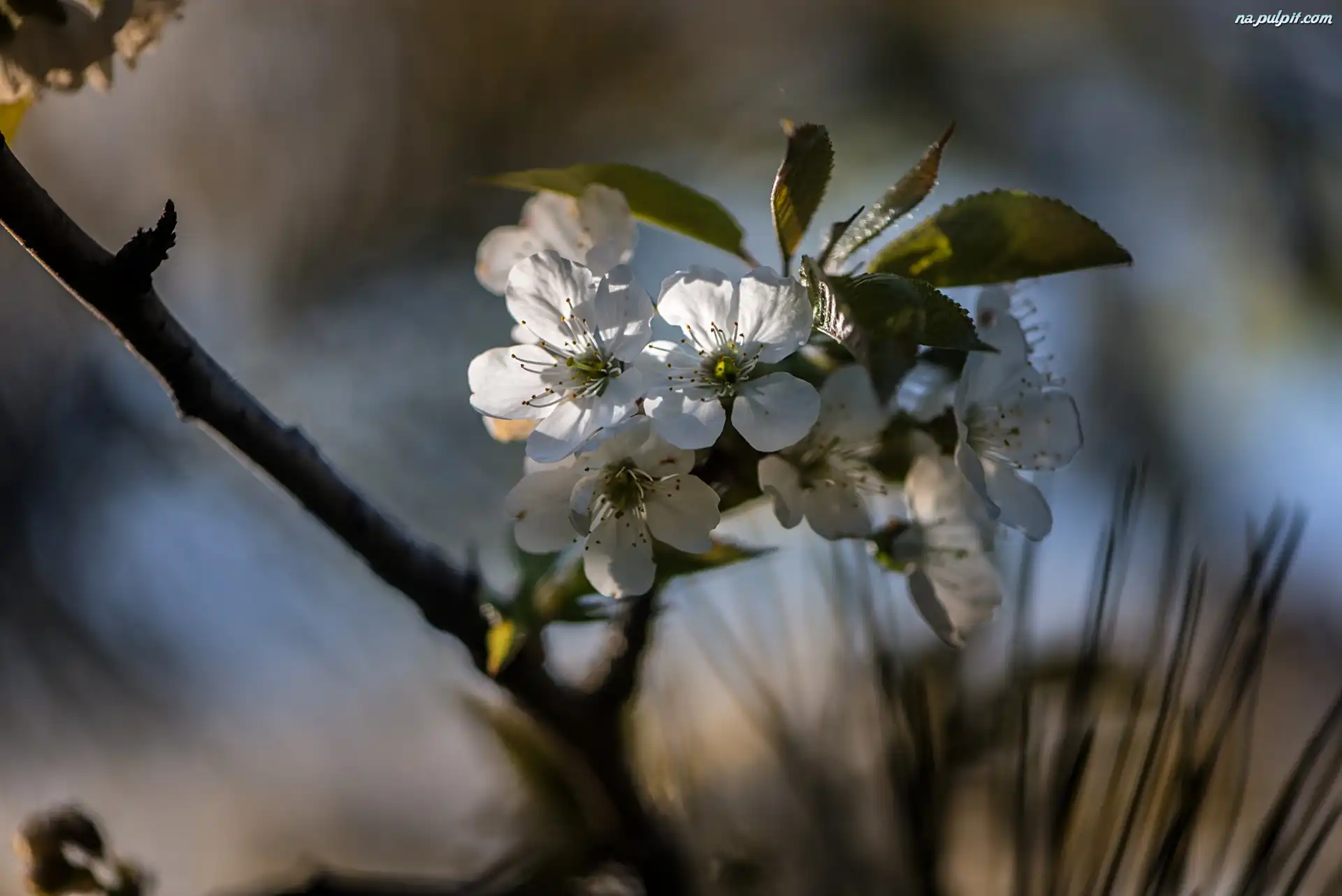 Światło, Gałązka, Kwiatki, Białe, Drzewo owocowe Na Pulpit