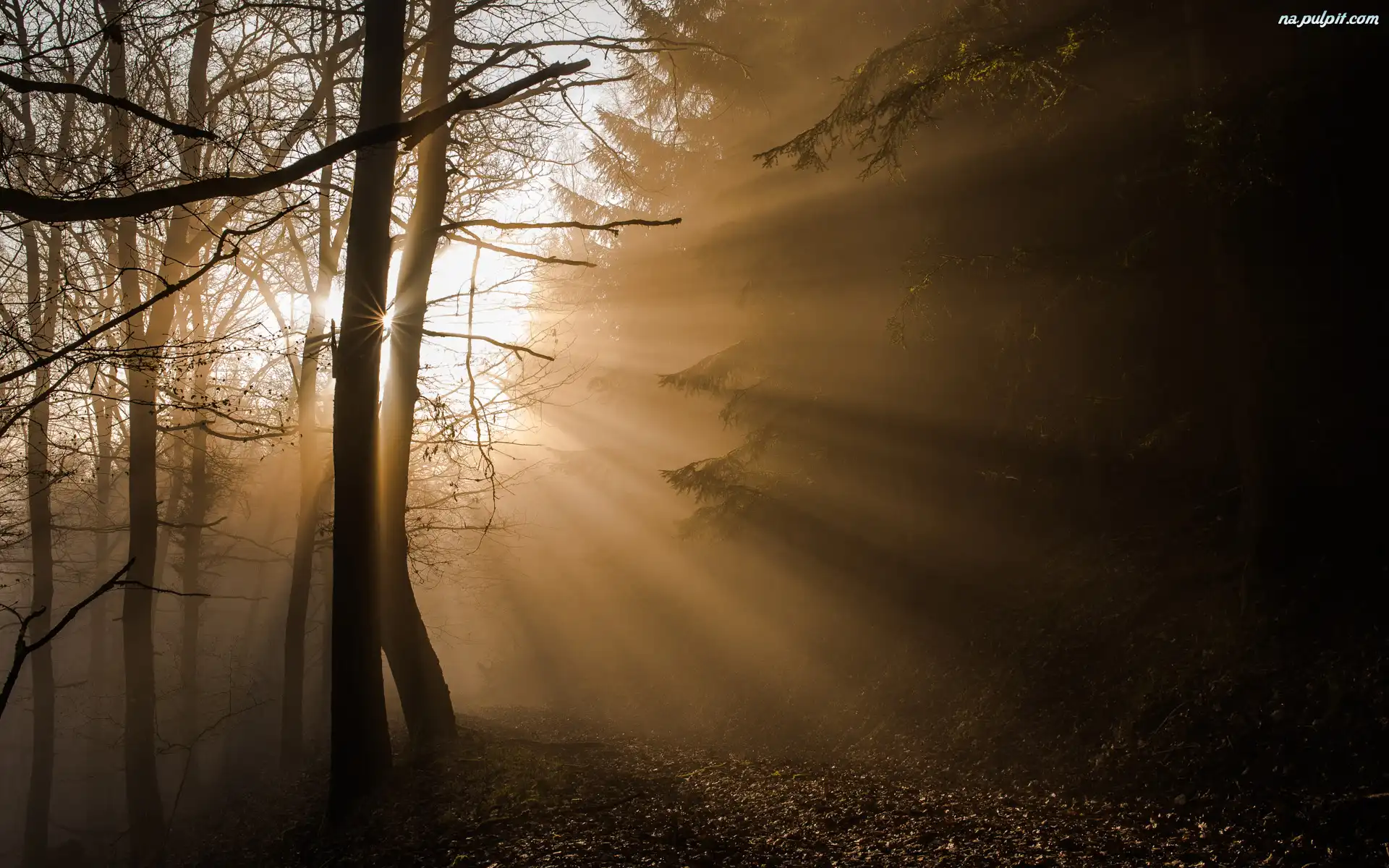 Przebijające Światło, Las, Park Narodowy Eifel, Niemcy, Drzewa Na Pulpit