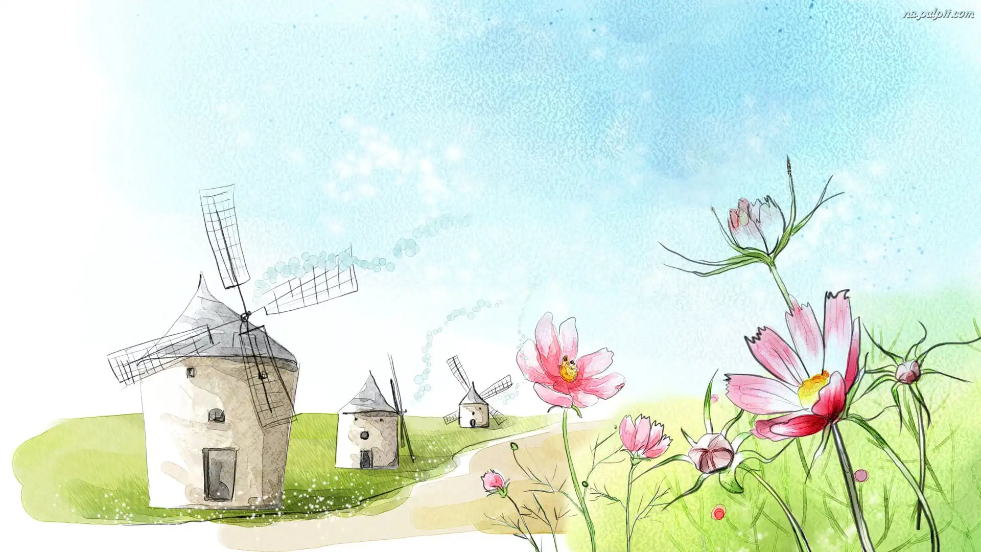 Wiatraki, Kwiaty, Różowe, Trzy Na Pulpit