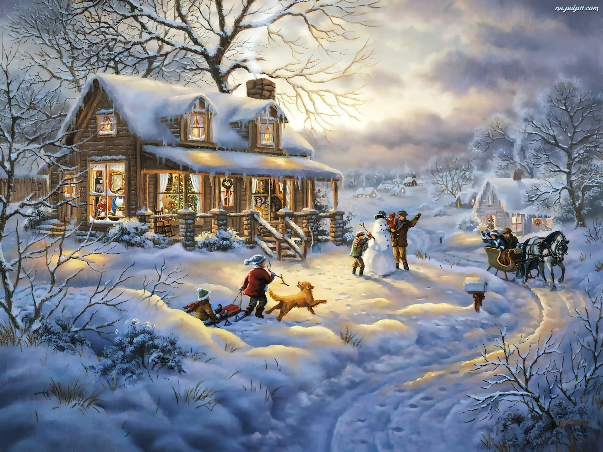 Widoczek, Zabawa, Malarstwo, Dom, Zima, Dzieci Na Pulpit