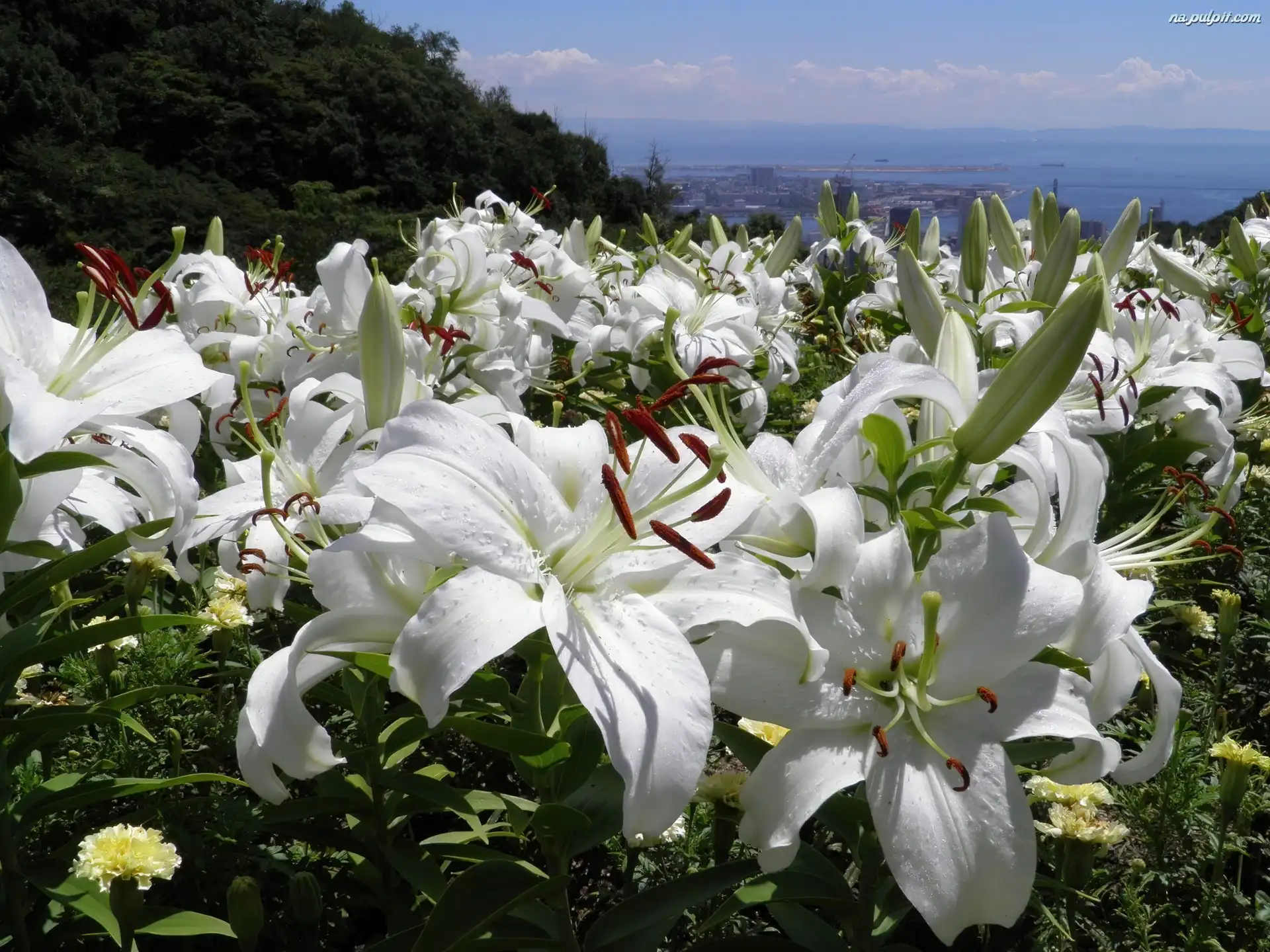 Widok, Lilie, Białe, Niebo Na Pulpit