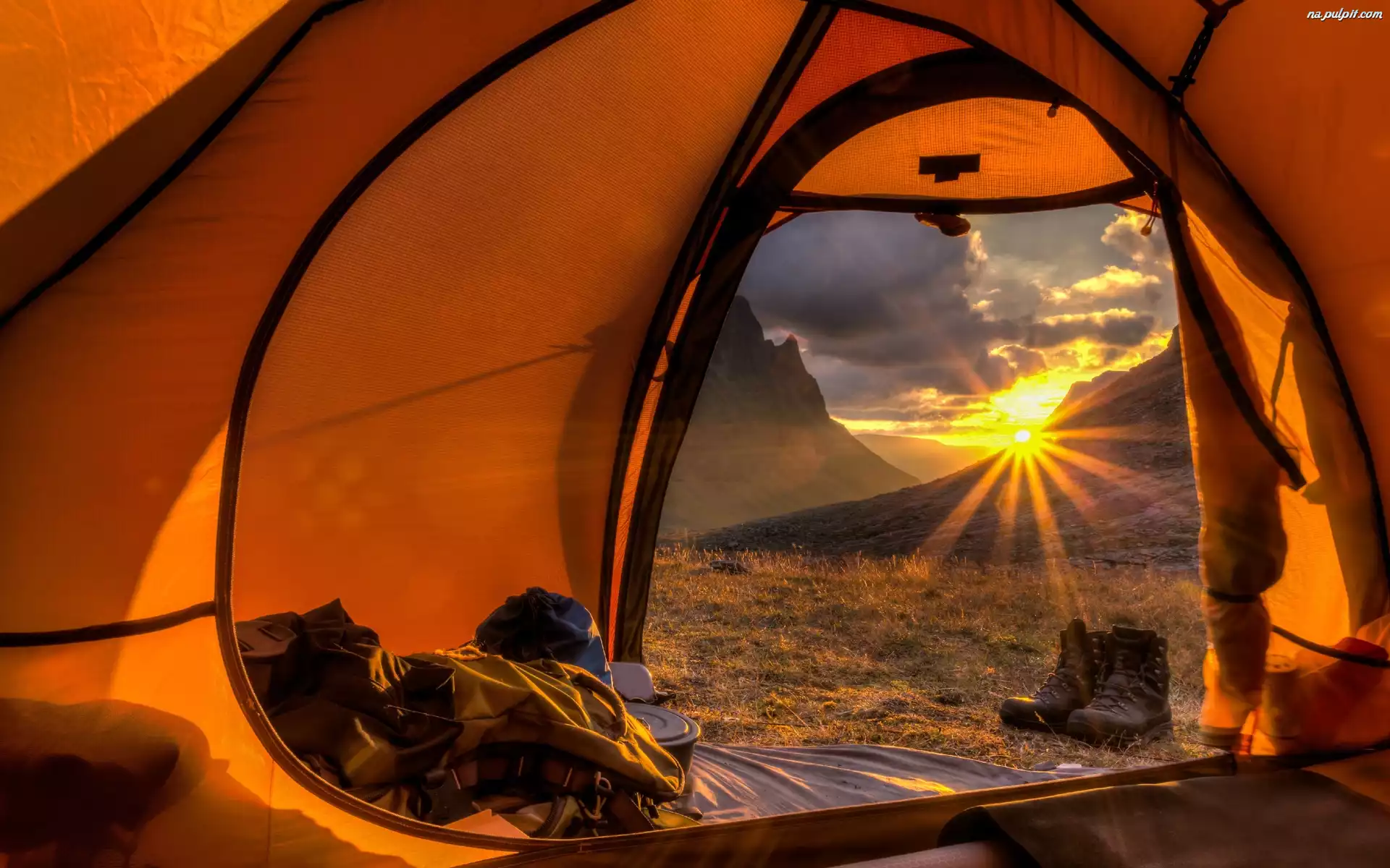 Chmury, Widok, Słońca, Góry, Na, Namiot, Promienie Na Pulpit