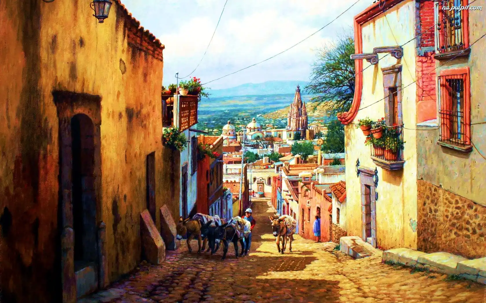 Widok, Panorama, Ulica, Domy, Miasta Na Pulpit