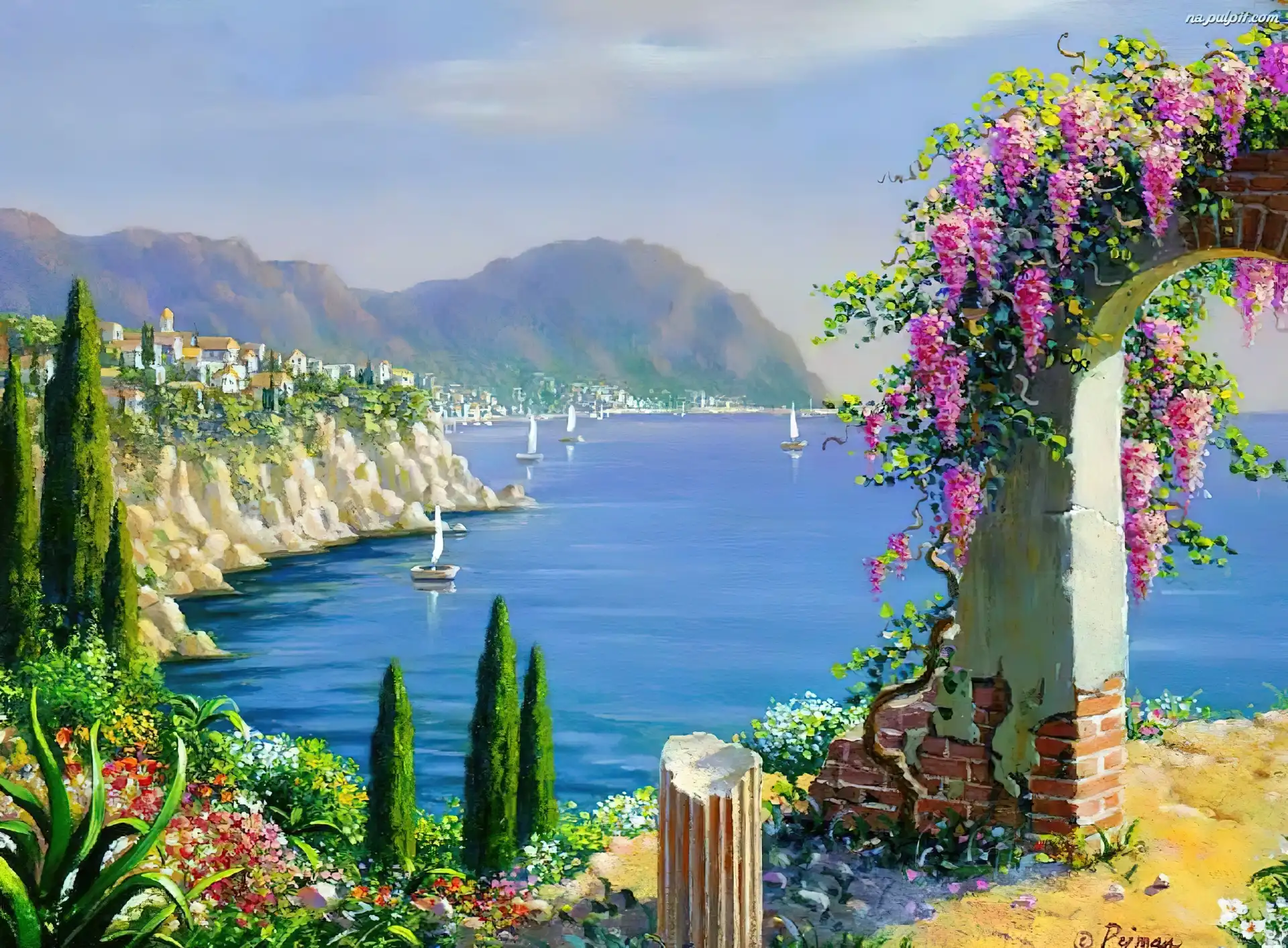 Łuk, Miasto, Wybrzeże, Widok, Domy