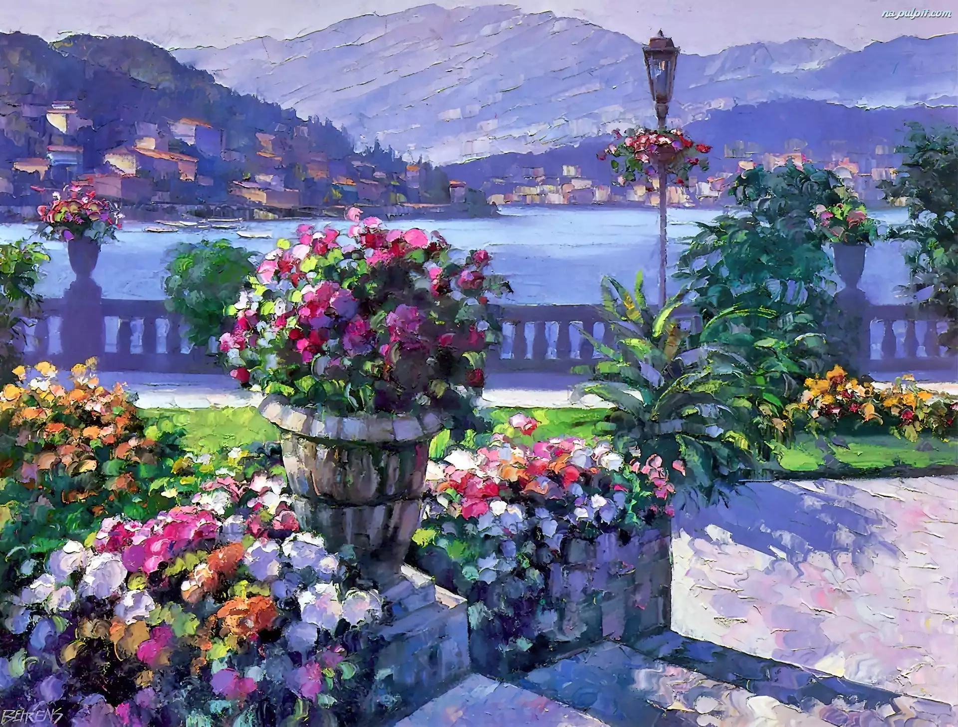 Widok, Kwiaty, Ogród, Morze Na Pulpit