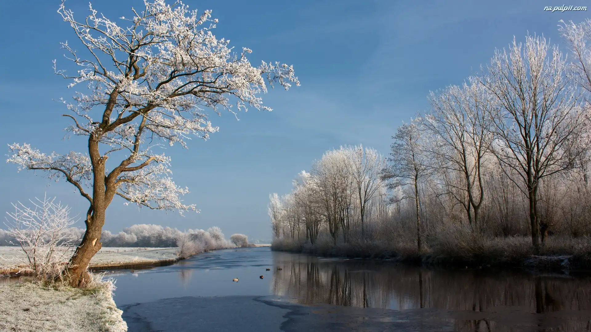 Widok, Drzewa, Rzeka, Zimowy Na Pulpit