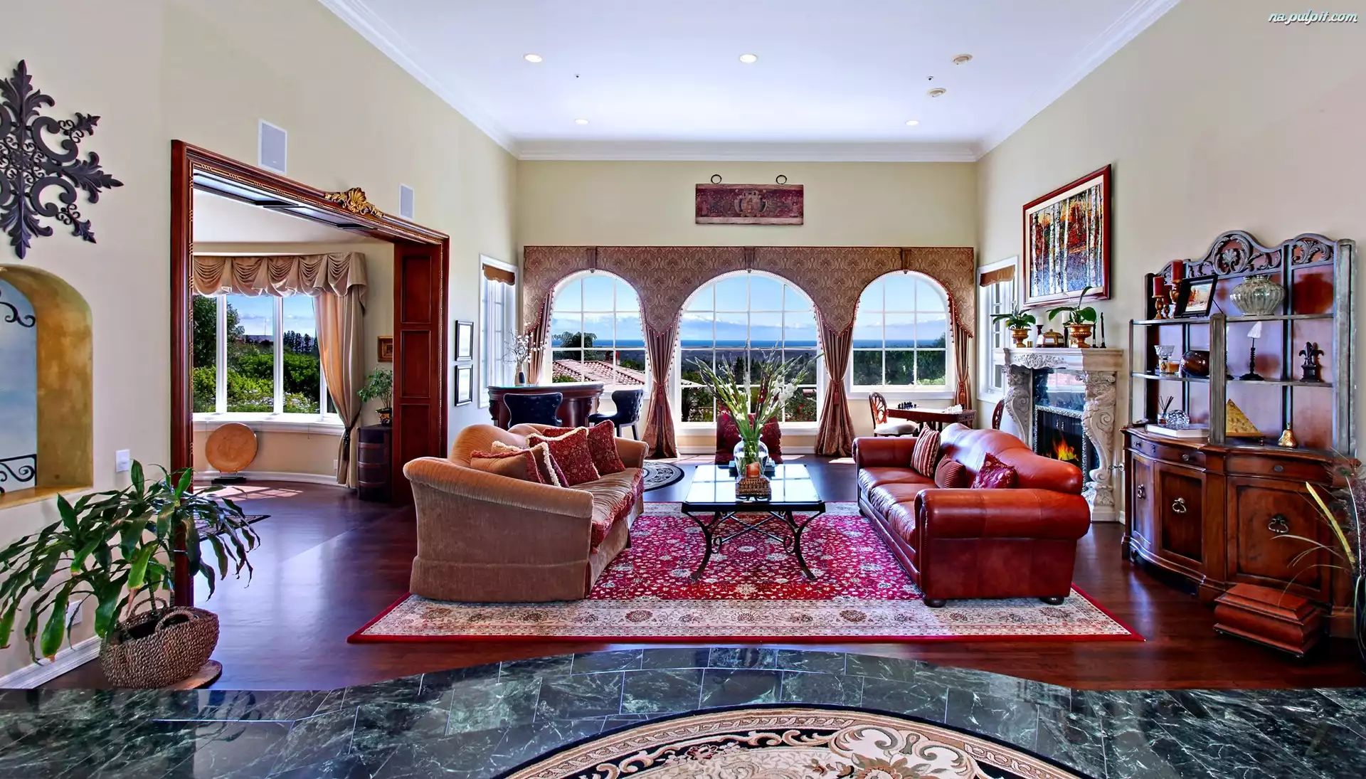 Widok, Meble, Dywan, Salon, Okna Na Pulpit