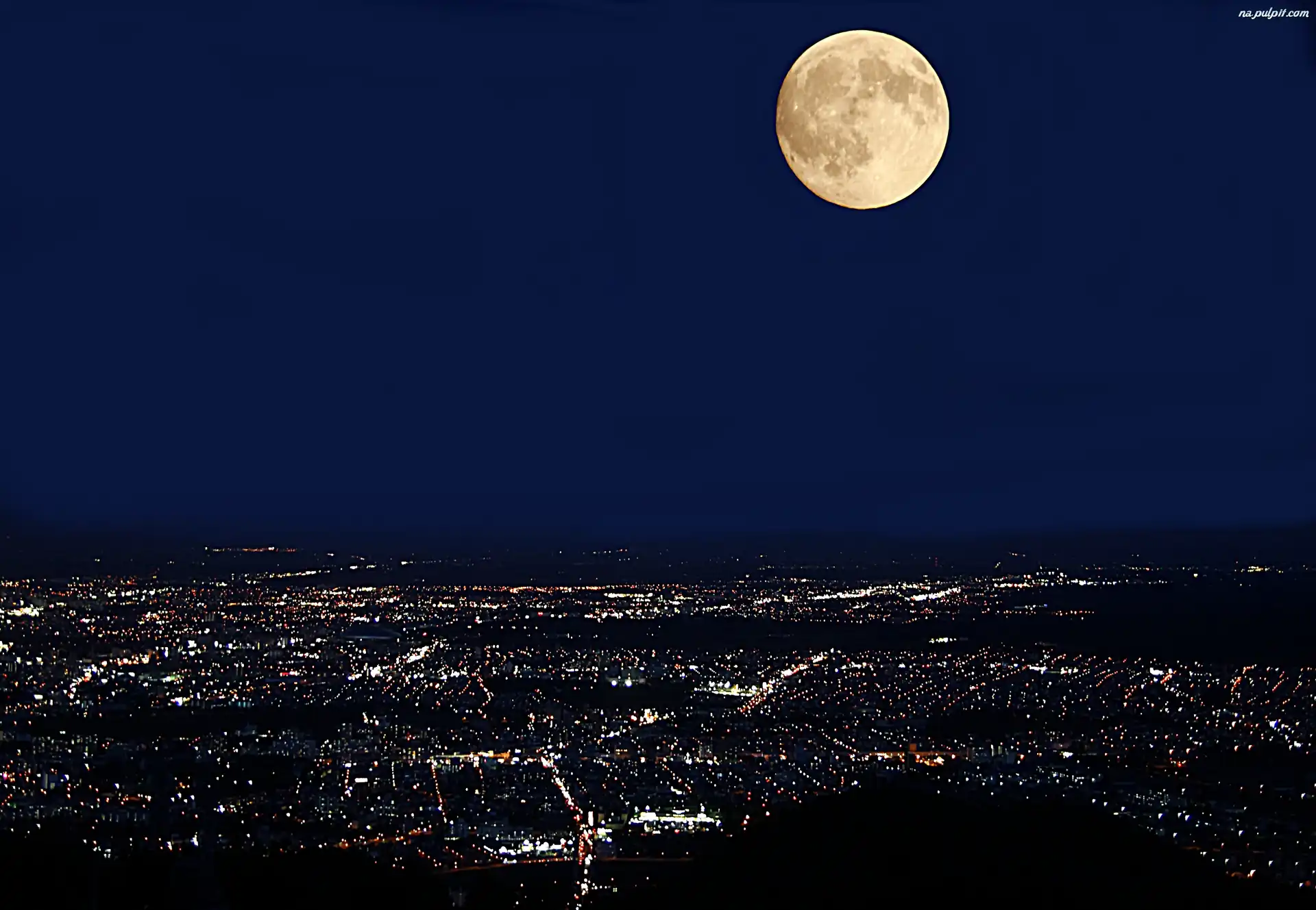 Japonia, widok na miasto, miasto nocą, Księżyc, Sapporo Na Pulpit