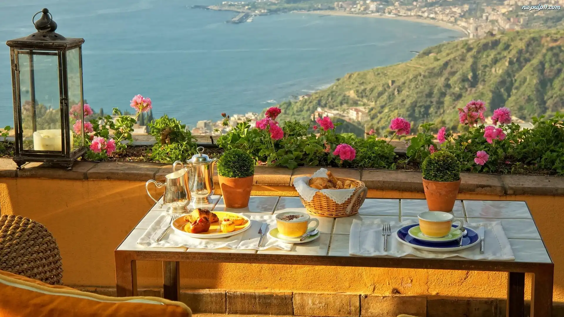Widok, Kwiaty, Pelargonie, Åšniadanie, Taras, Lampion Na Pulpit