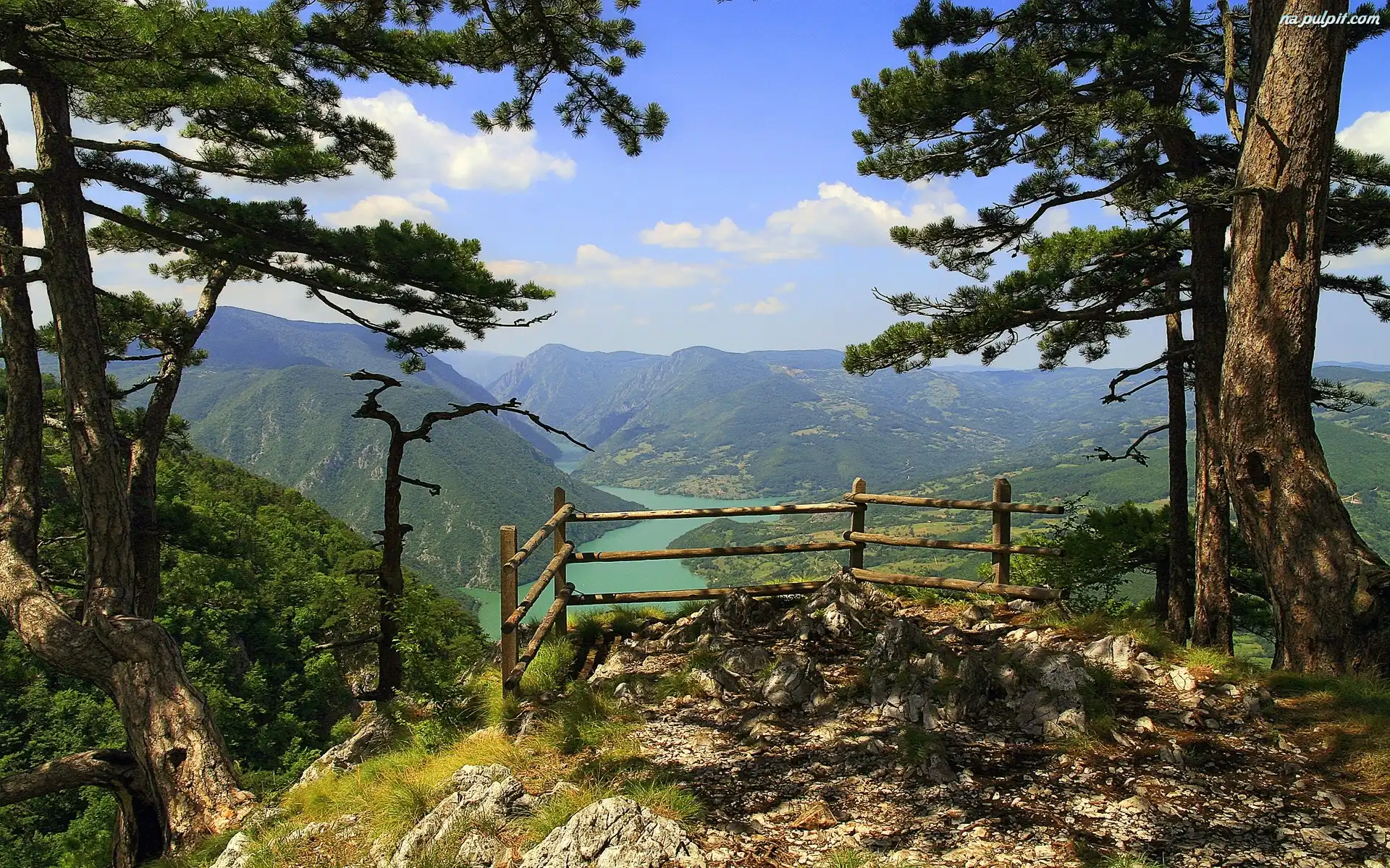Widokowy, Drzewa, Góry, Rzeka, Punkt Na Pulpit