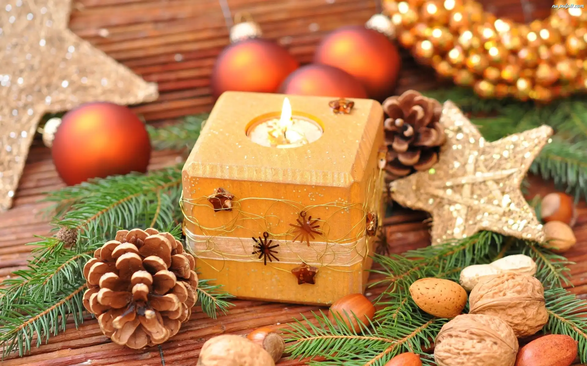 Bombki, ÅšwiÄ…teczna, Kompozycja, Gwiazdki, Åšwieca, Szyszki