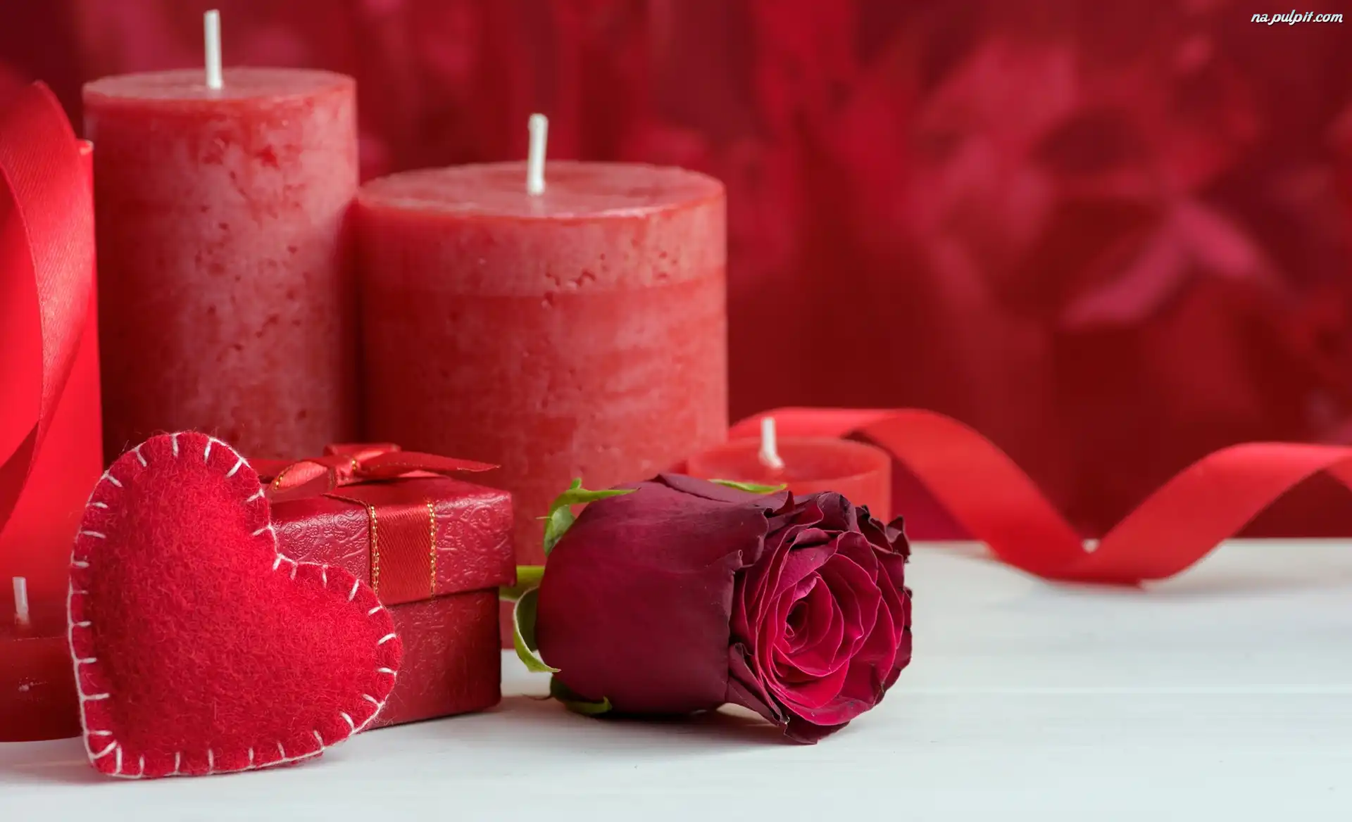 Świece, Róża, Walentynki, Prezent, Czerwone, Serduszko