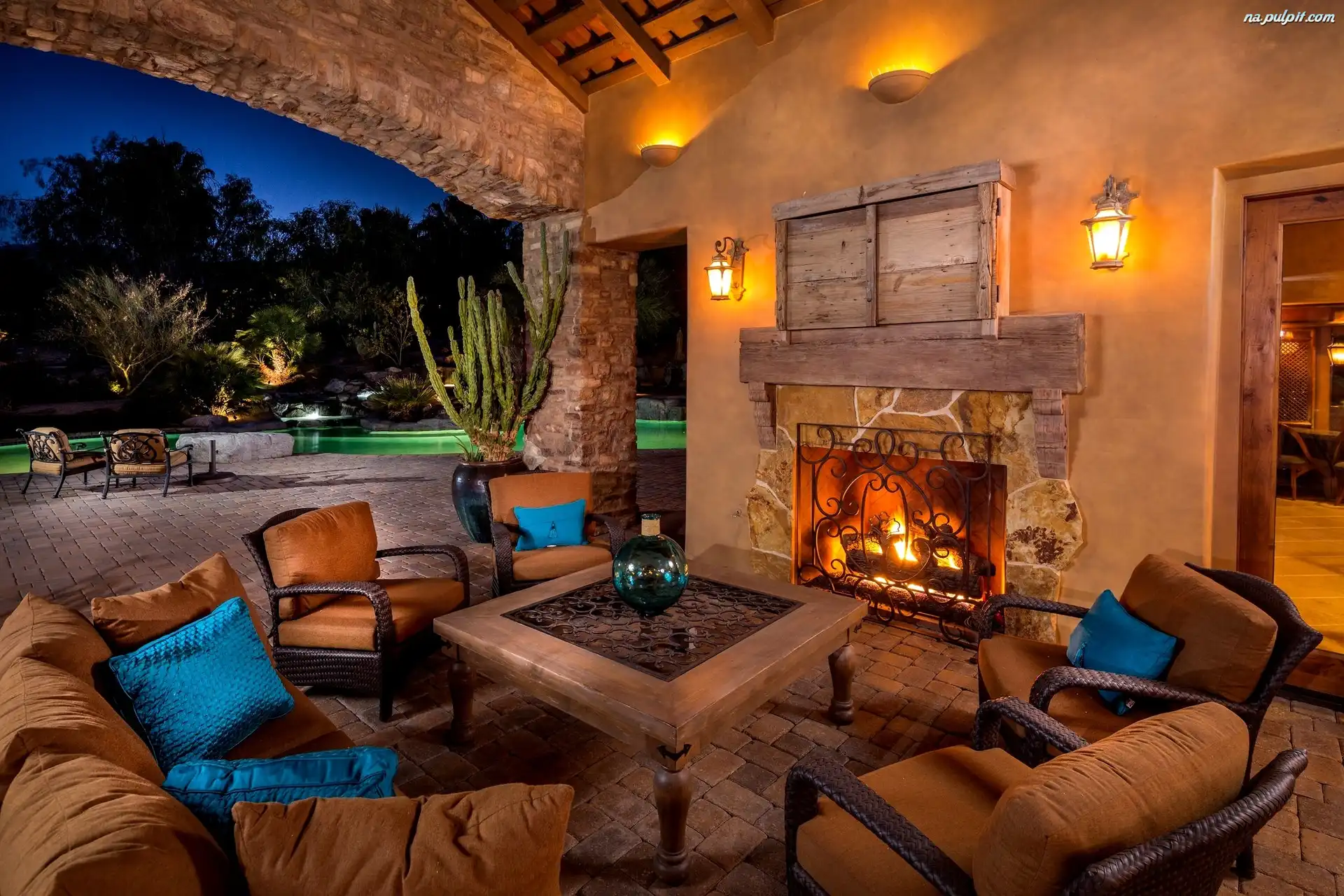 Wieczór, Taras, Salon, Dom, Ogród Na Pulpit