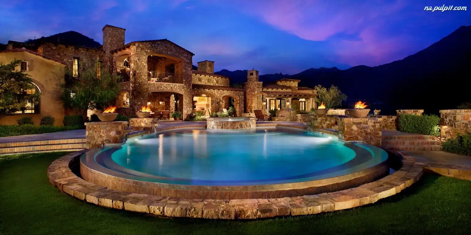 Wieczór, Dom, Luksusowy, Basen