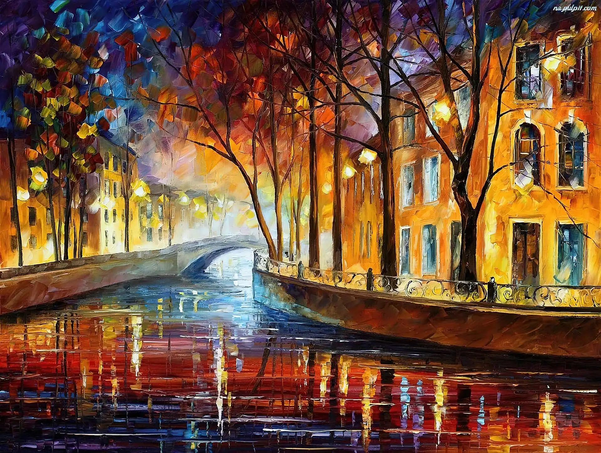 Wieczór, Most, Reprodukcja, Obraz, Kanał