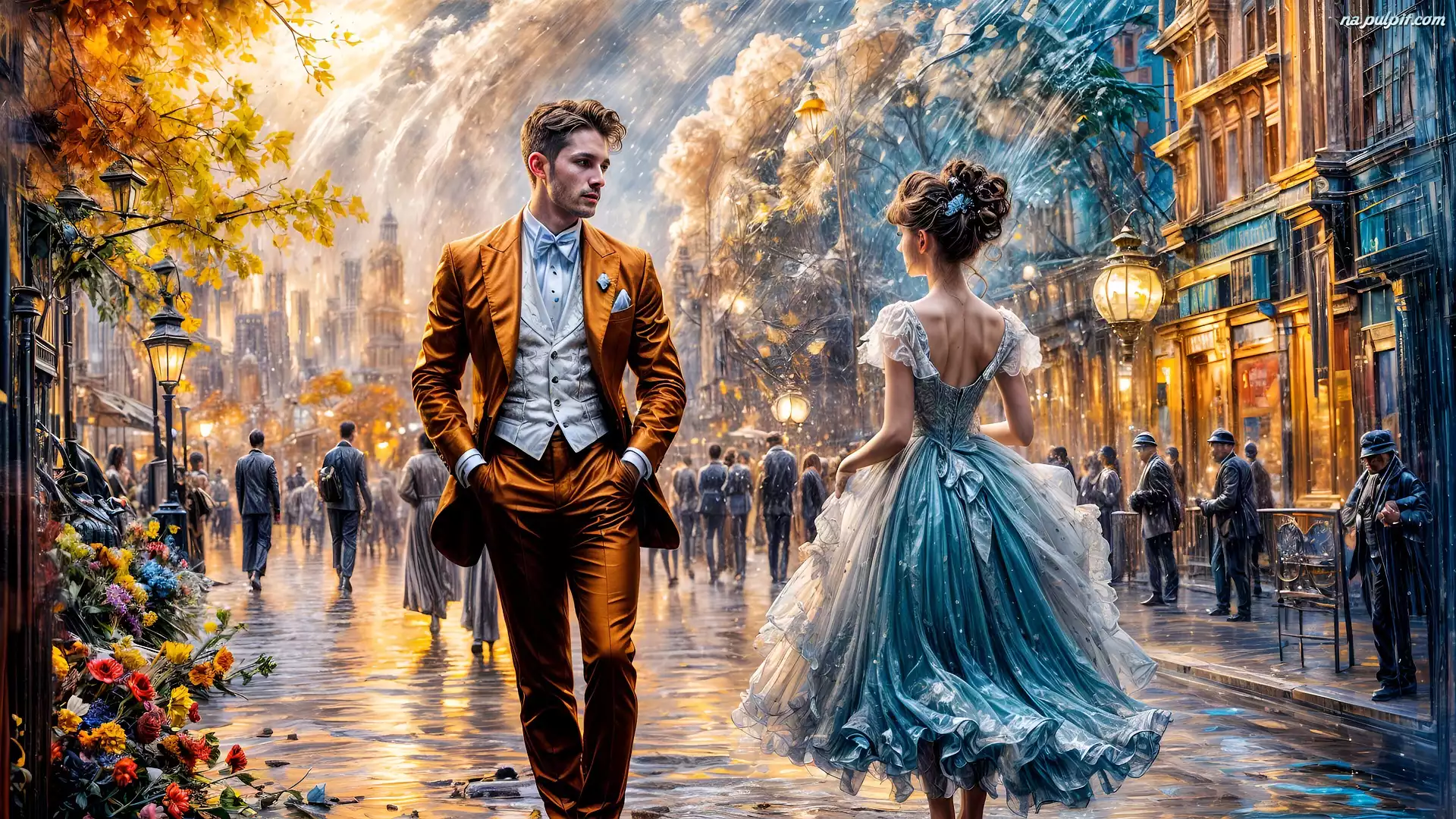 Mężczyzna, Kobieta, Ulica, Wieczór Reprodukcja obrazu Na Pulpit