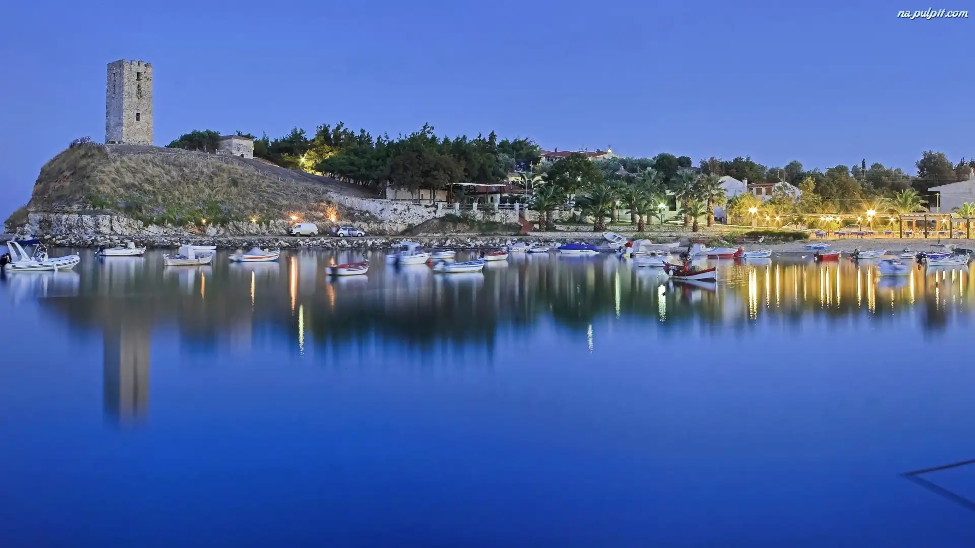 Wieczór, Zacumowane, Wybrzeże, Łódki