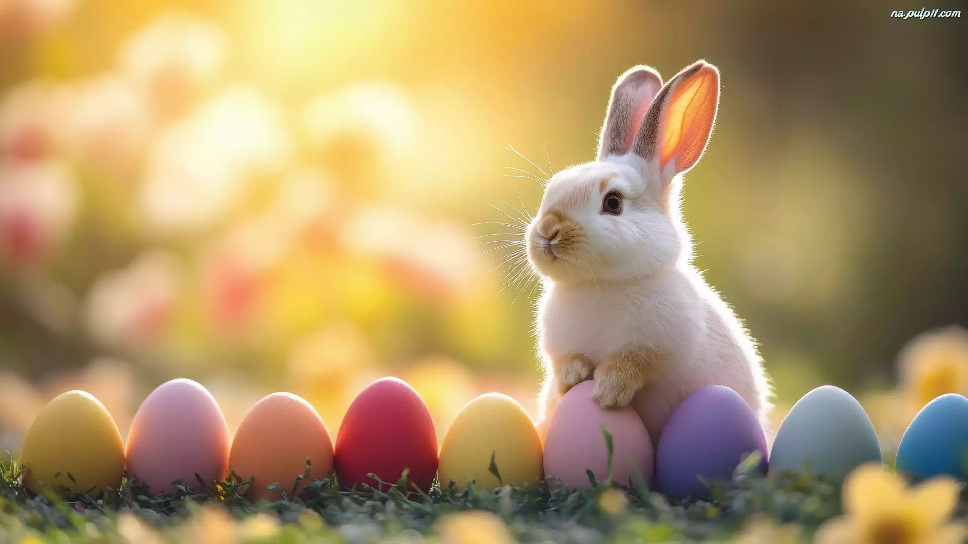 Pisanki, Wielkanoc, Biały, Trawa, Królik Na Pulpit