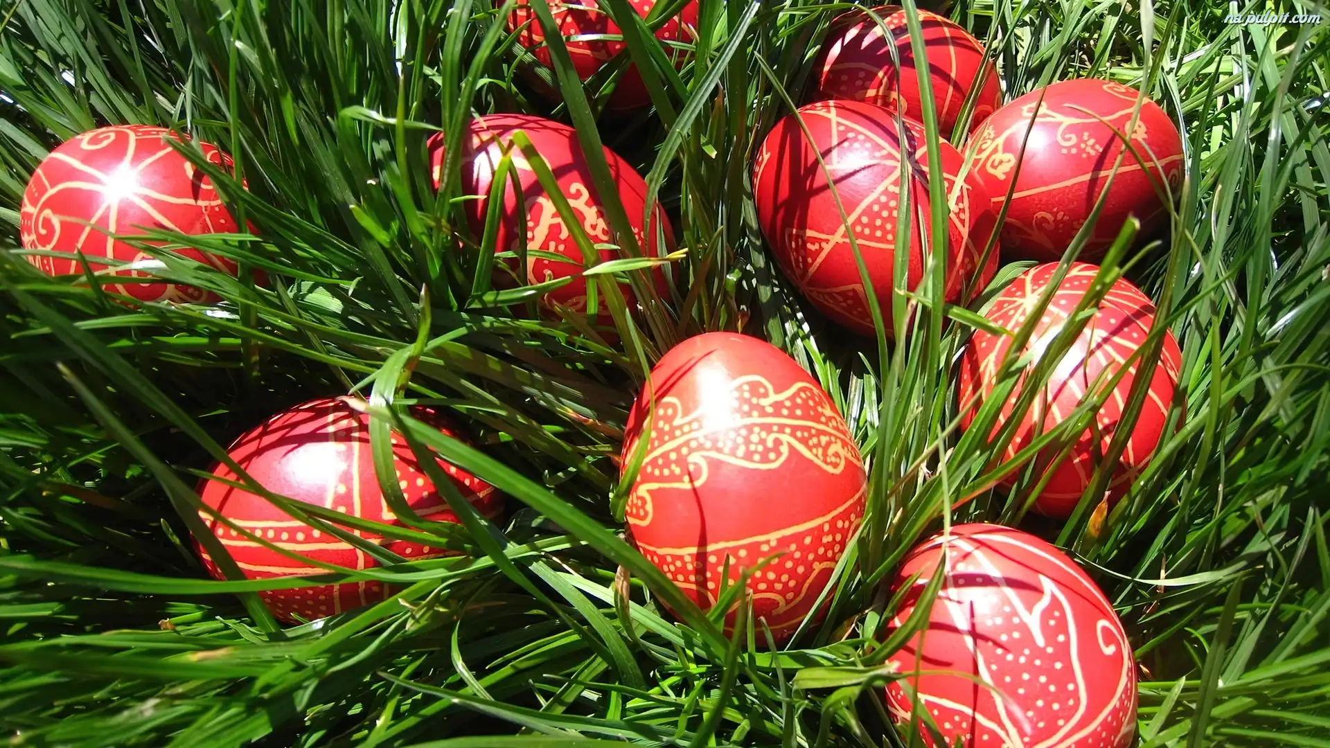 Wielkanoc, Pisanki, Czerwone, Trawa