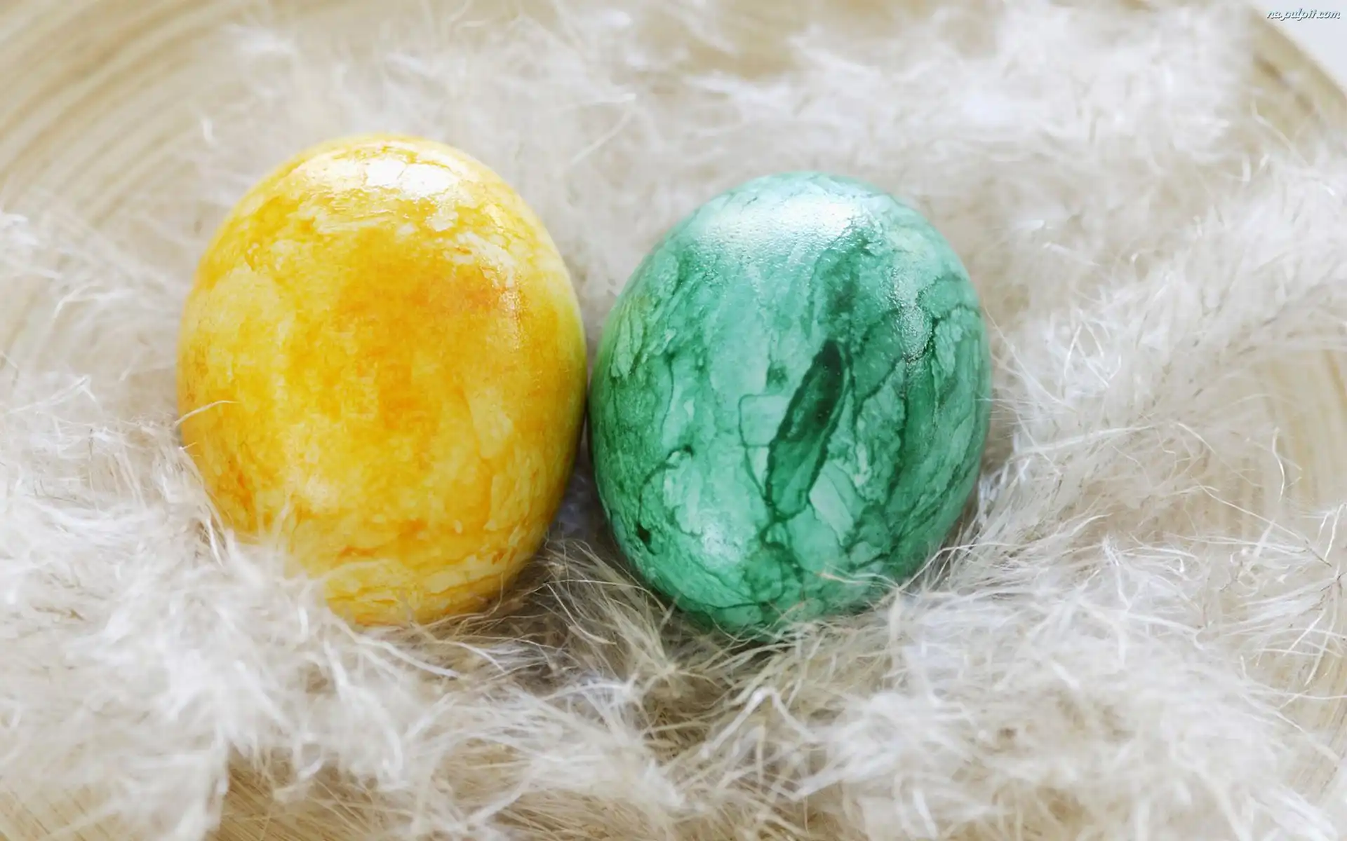 Wielkanoc, Białe, Pisanki, Dwie, Piórka