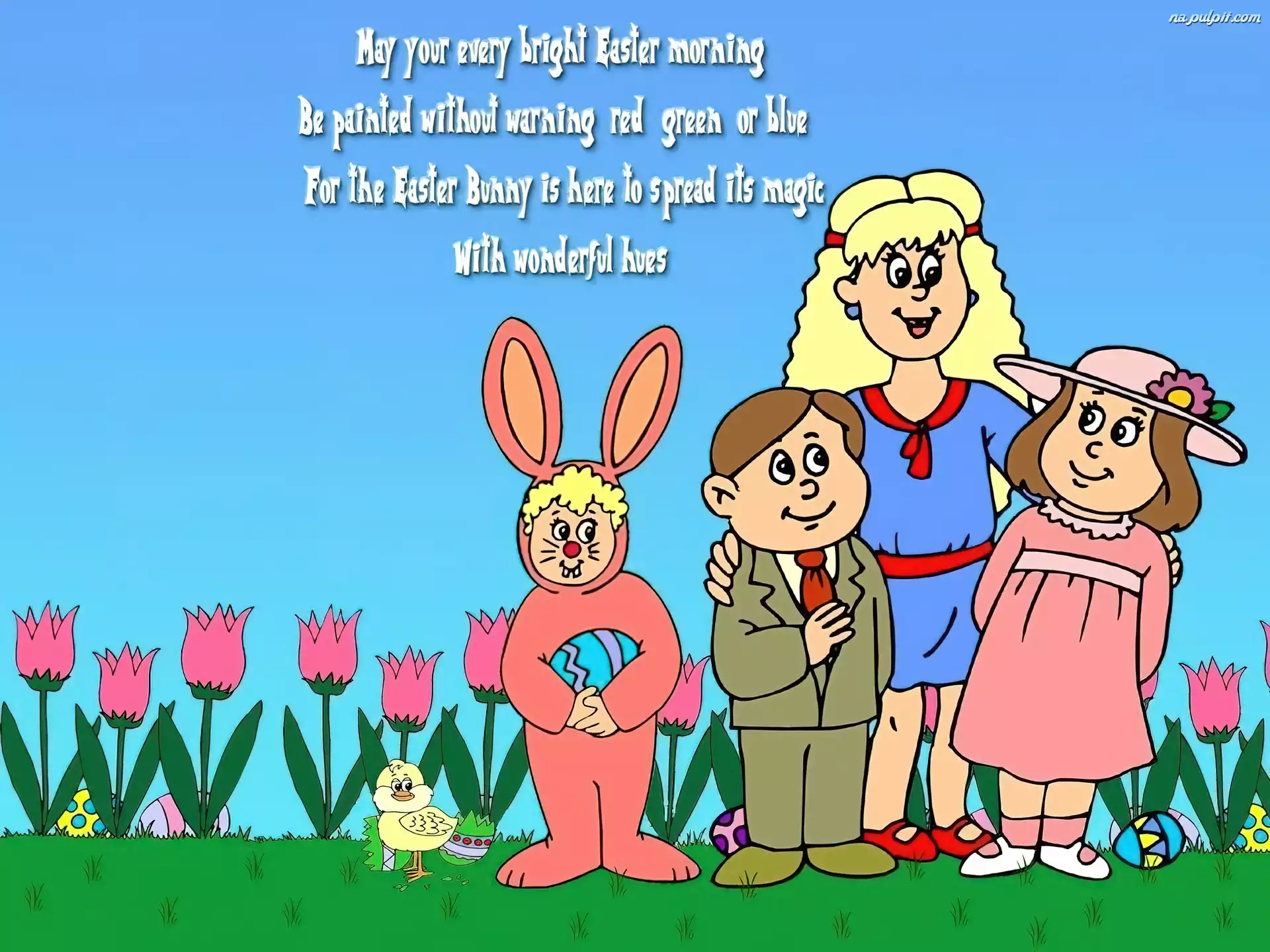 dzieci, Wielkanoc, Tulipany Na Pulpit