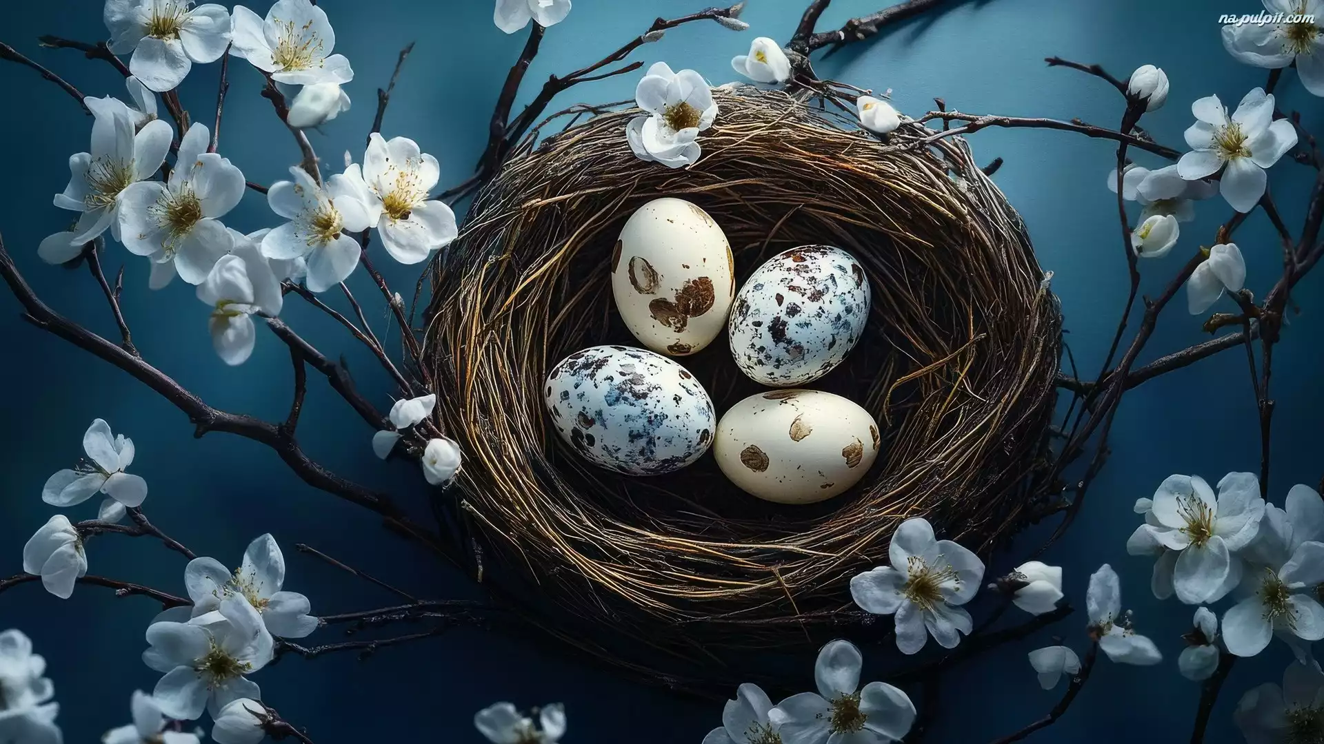 Kwiaty, Gałązki, Gniazdo, Wielkanoc, Cętkowane, Pisanki, Białe Na Pulpit