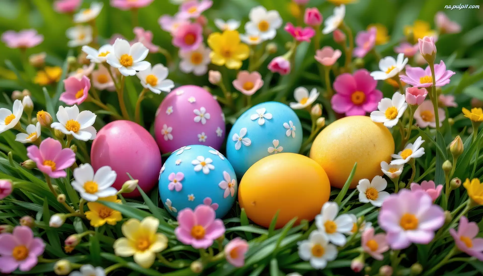 Trawa, Drobne, Kolorowe, Wielkanoc, Pisanki, Jajka, Kwiaty