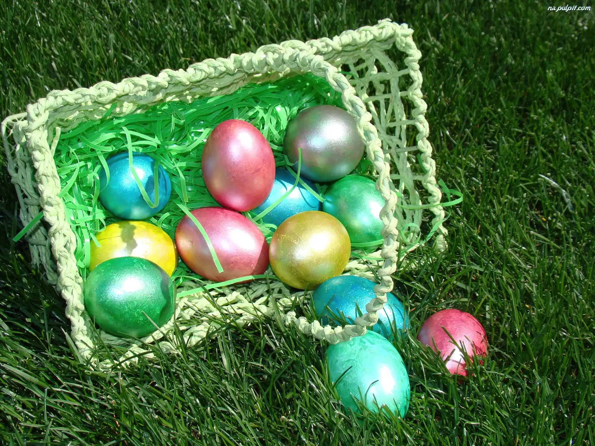 Wielkanoc, Jajka, Kolorowe, Koszyczek