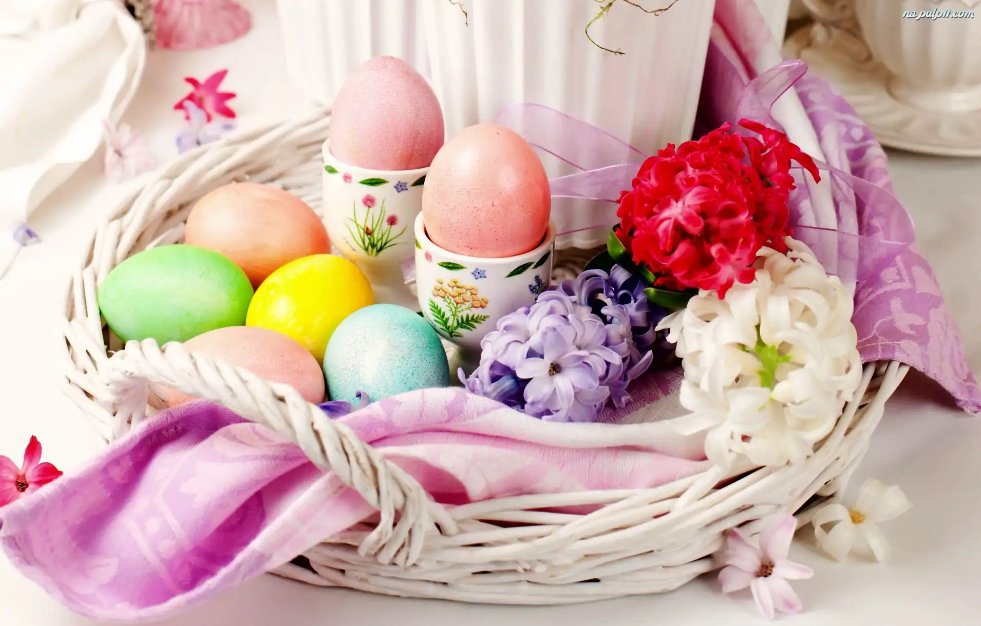 Wielkanoc, Pisanki, Kolorowe, Koszyk, Kwiaty Na Pulpit