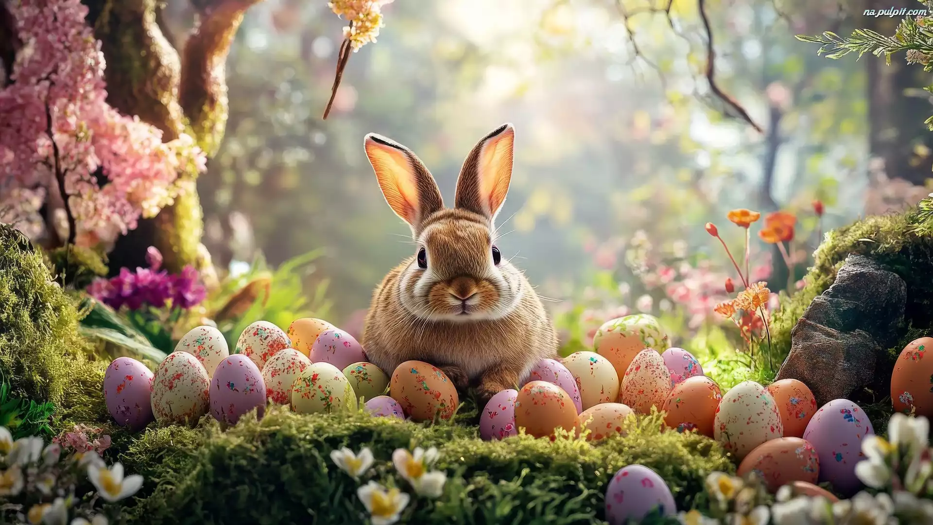 Pisanki, Wielkanoc, Królik, Kwiaty, Kolorowe Na Pulpit
