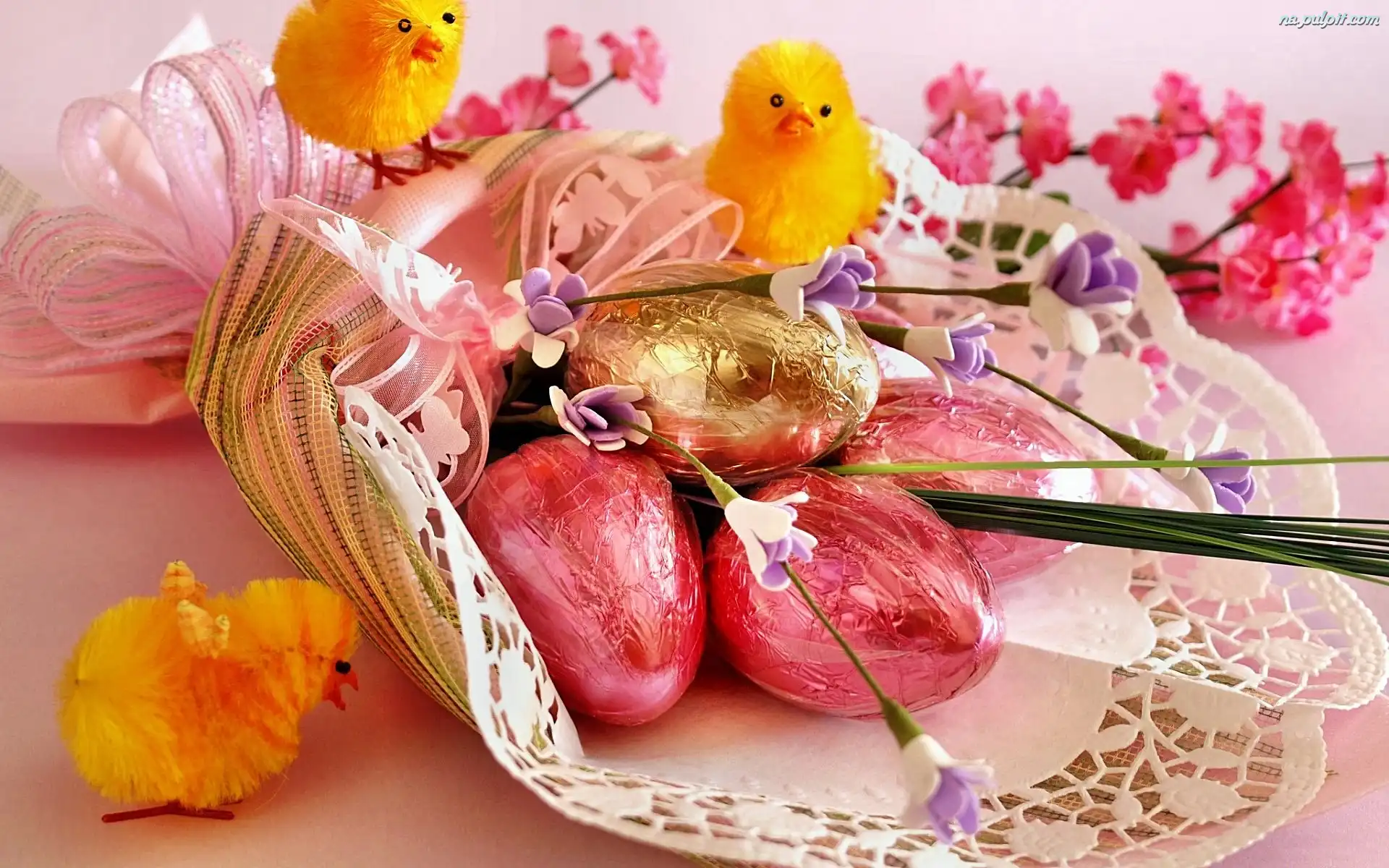 Wielkanoc, Jajka, Kurczaczki, Kwiatki