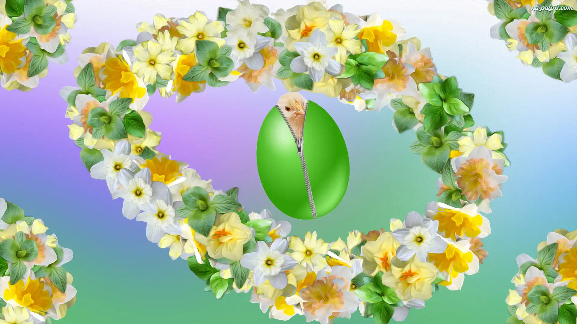 Wielkanoc, Pisanka, Zielona, Kwiaty, Kurczaczek Na Pulpit