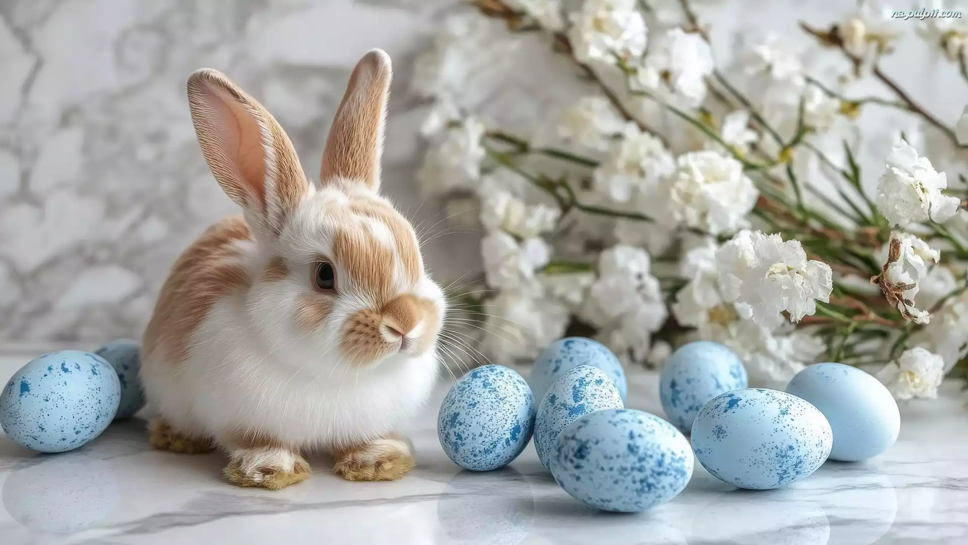 Kwiaty, Wielkanoc, Niebieskie, Królik, Pisanki Na Pulpit