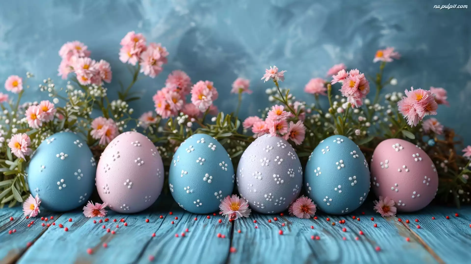 AI, Kwiaty, Pisanki, Wielkanoc, Różowe, Niebieskie, Deski Na Pulpit