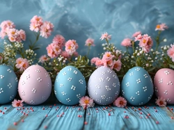 AI, Kwiaty, Pisanki, Wielkanoc, Różowe, Niebieskie, Deski