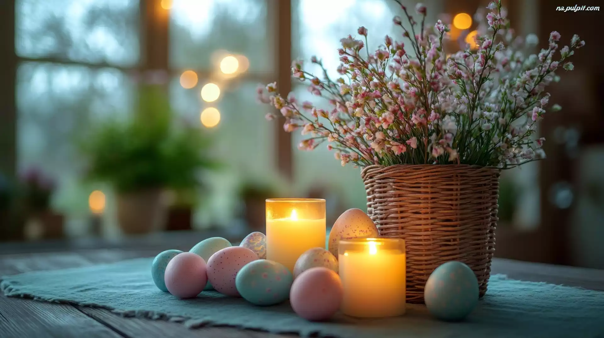 Koszyk, Wielkanoc, Pisanki, Kwiaty, Åšwiece Na Pulpit