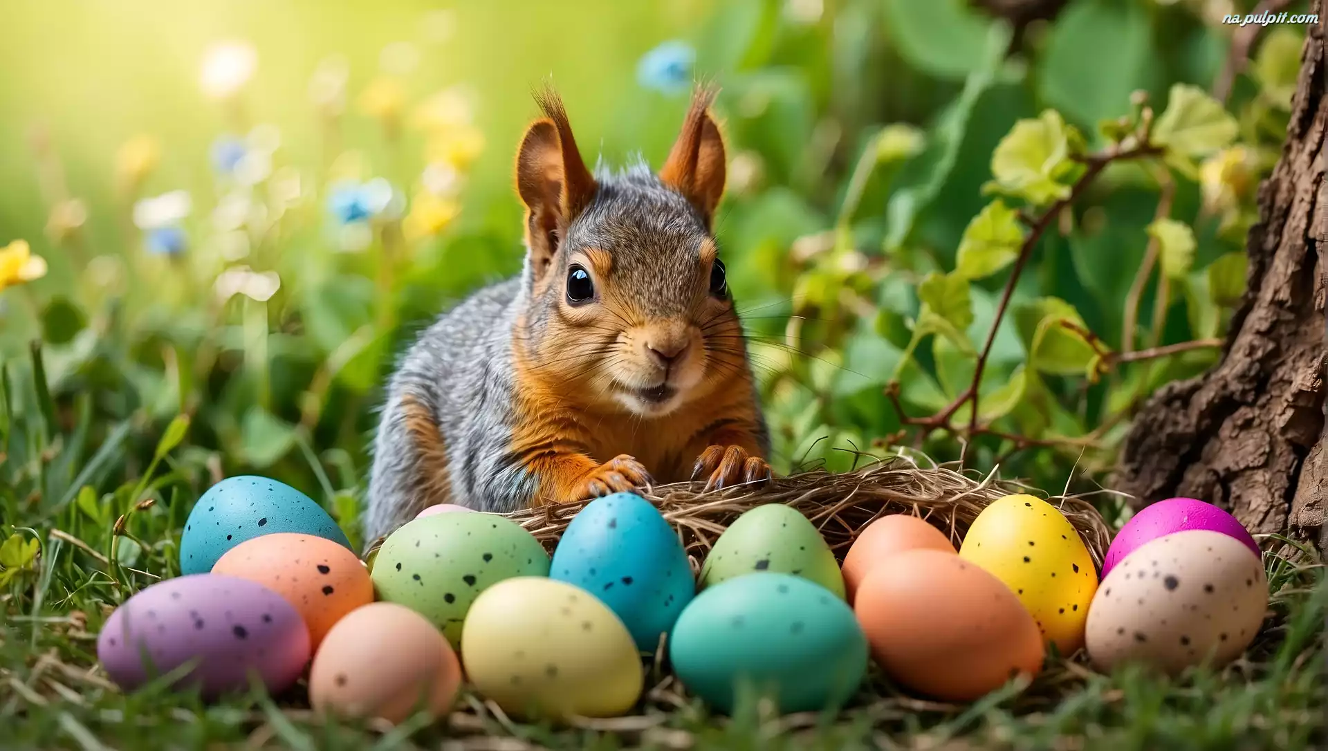 Wiewiórka, Pisanki, Trawa, Wielkanoc Na Pulpit