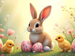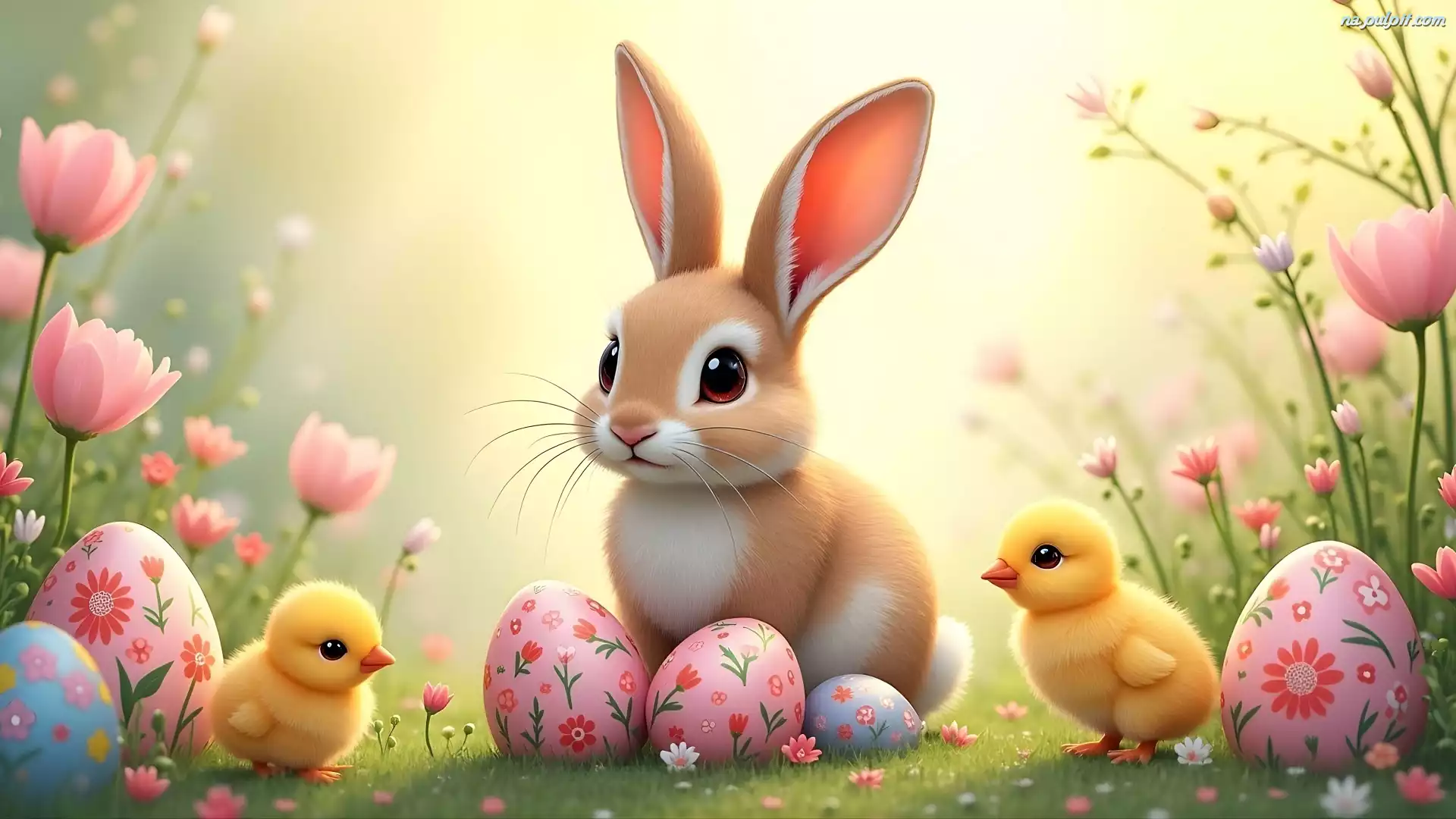 Pisanki, Wielkanoc, ZajÄ…czek, Grafika, Kurczaki Na Pulpit