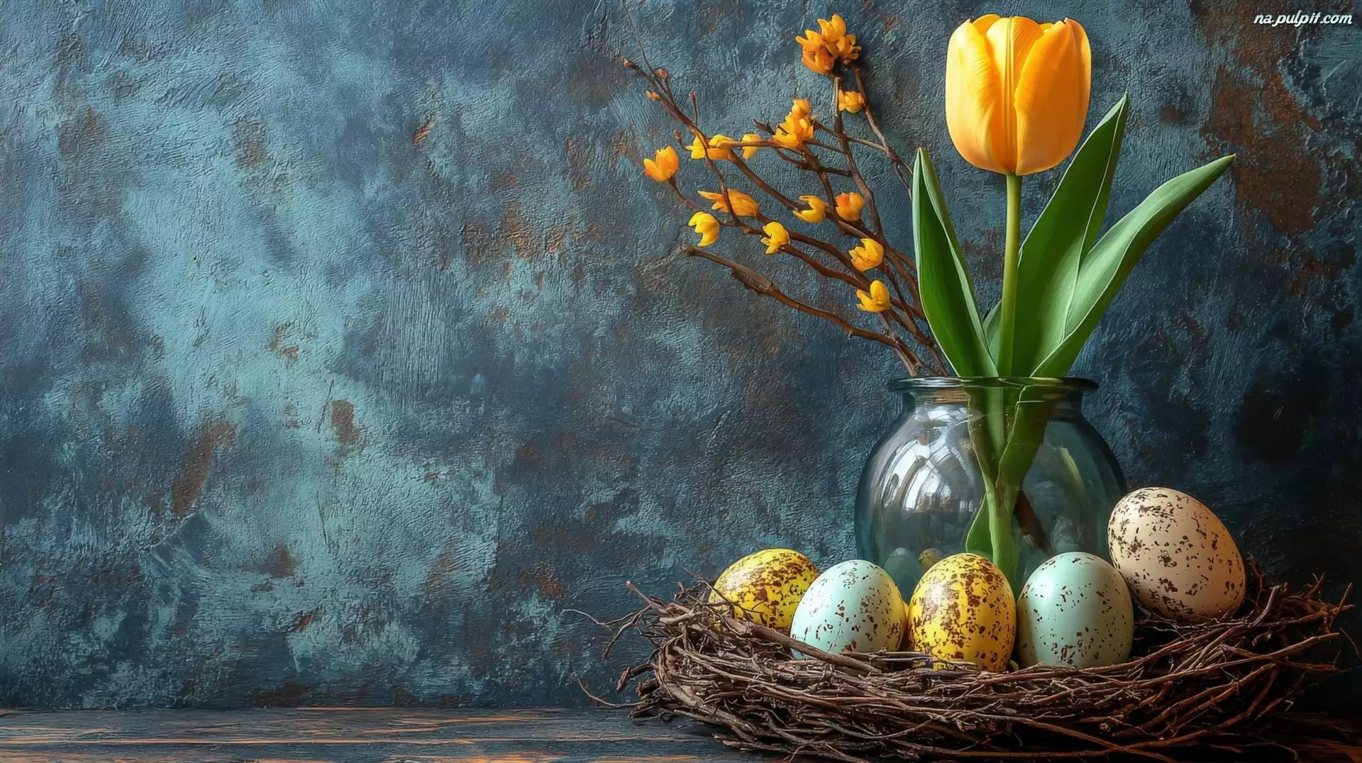 Wazon, Tulipan, Żółty, Wielkanoc, Pisanki, Gniazdko, Gałązki Na Pulpit