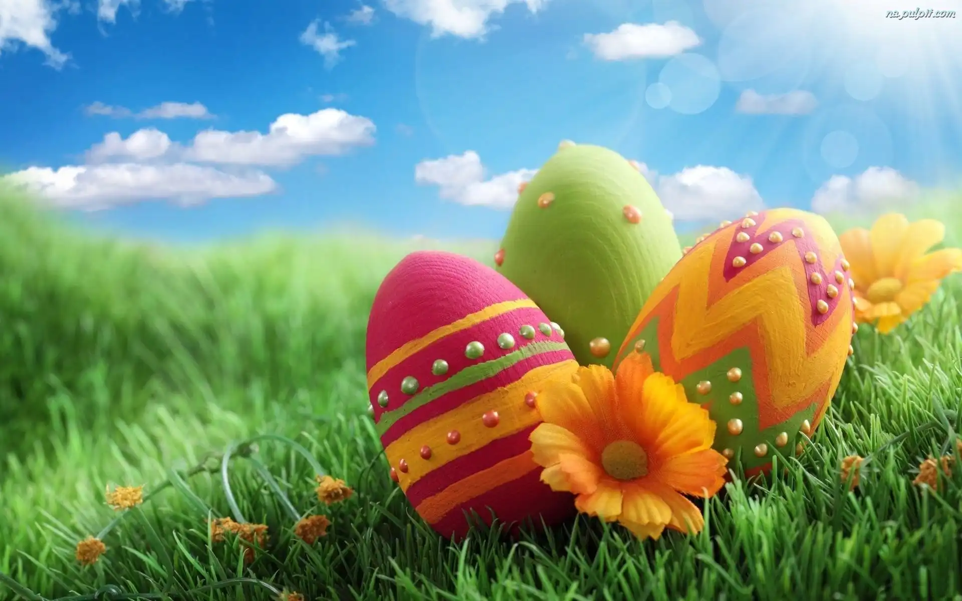 Wielkanocne, Trawa, Niebo, Jajka Na Pulpit