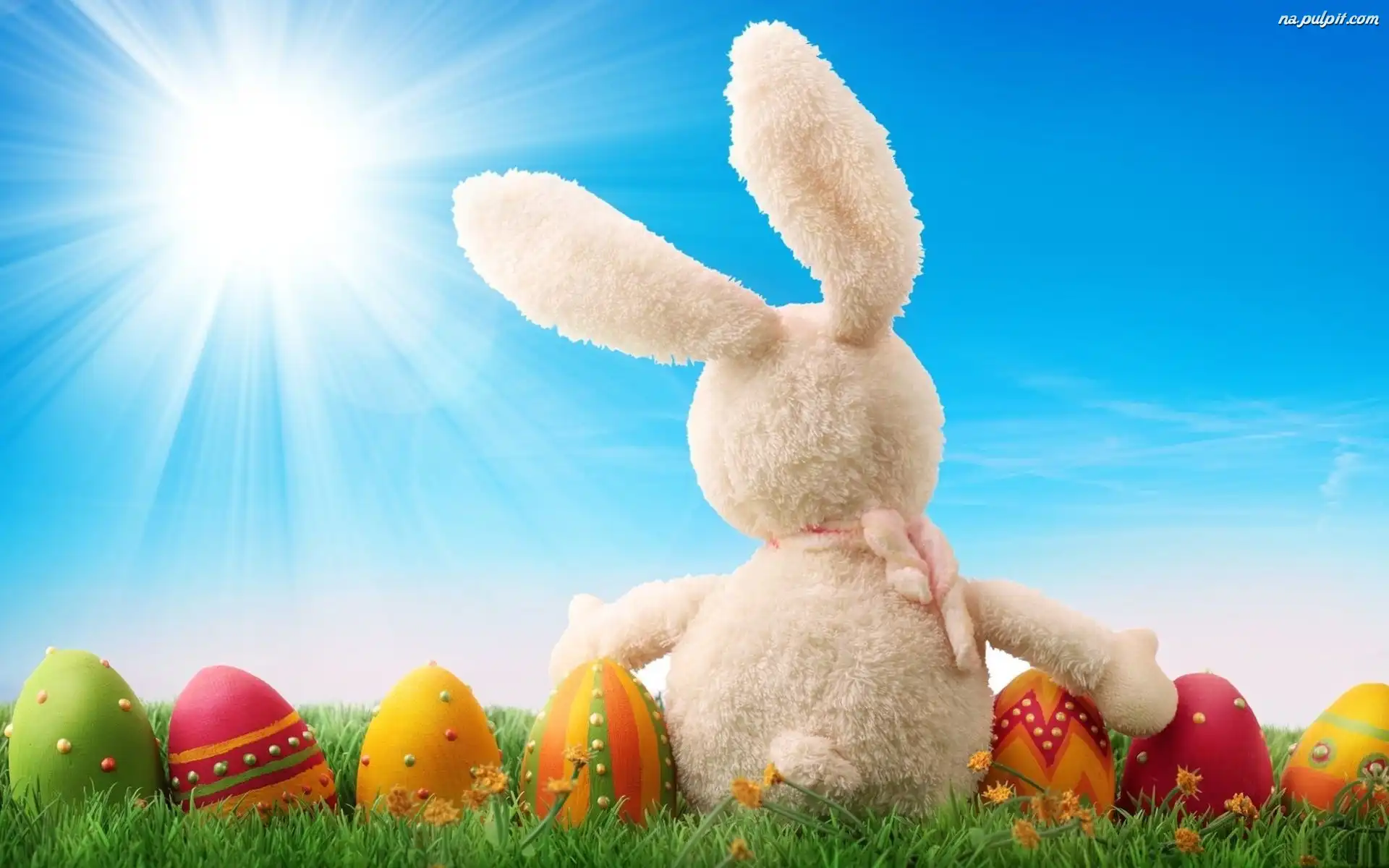 Wielkanocne, Trawa, Zielona, ZajÄ…czek, Jajka Na Pulpit
