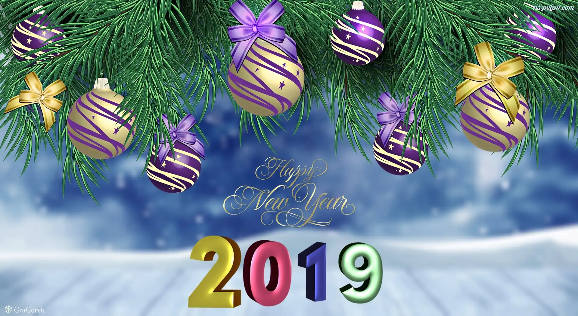 2019, Świerk, Grafika, Bombki, Nowy Rok, Gałązki