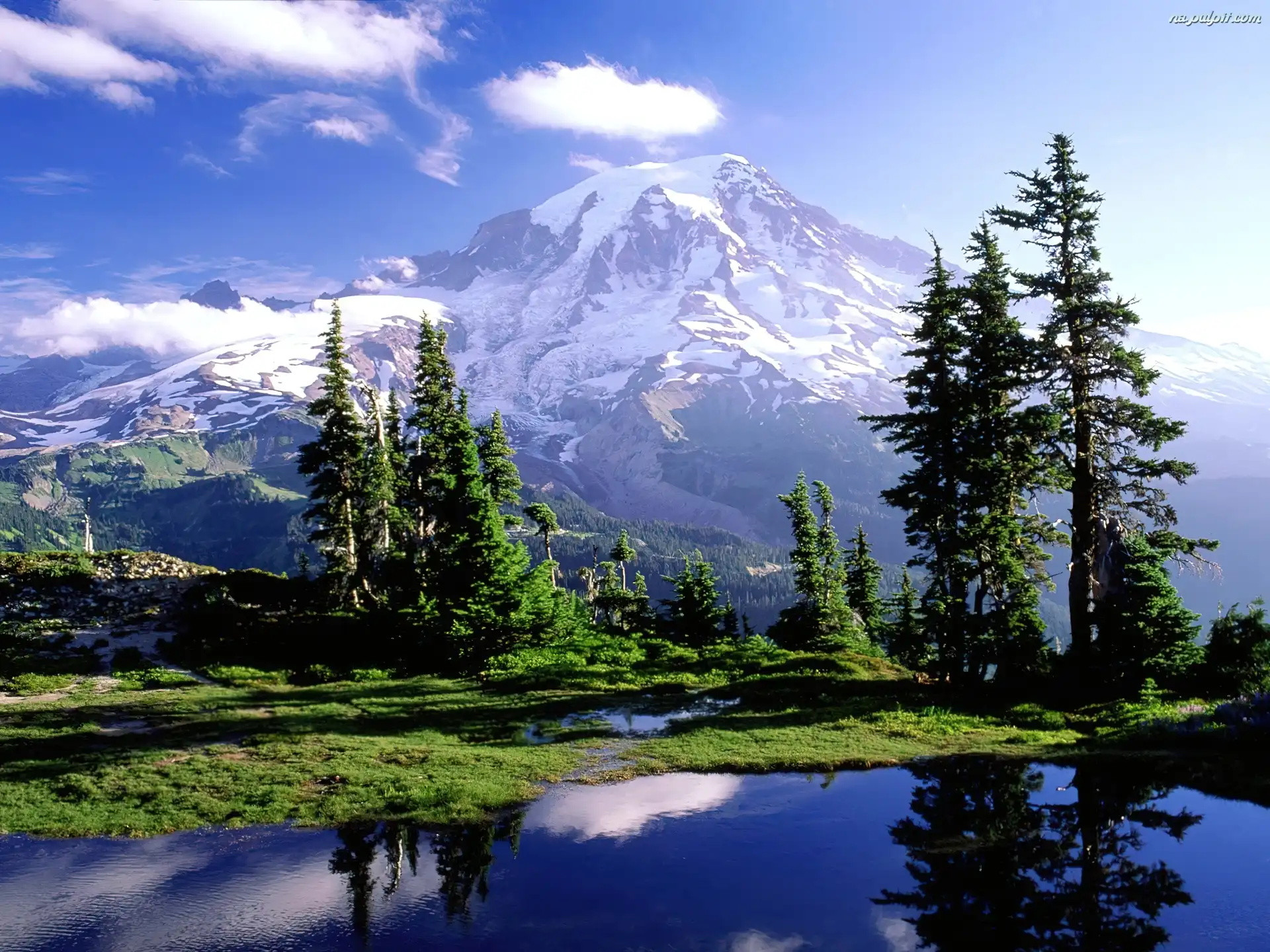 Świerki, Szczyty, Jezioro, Śnieg, Górskie, Ośnieżone, Góry Na Pulpit