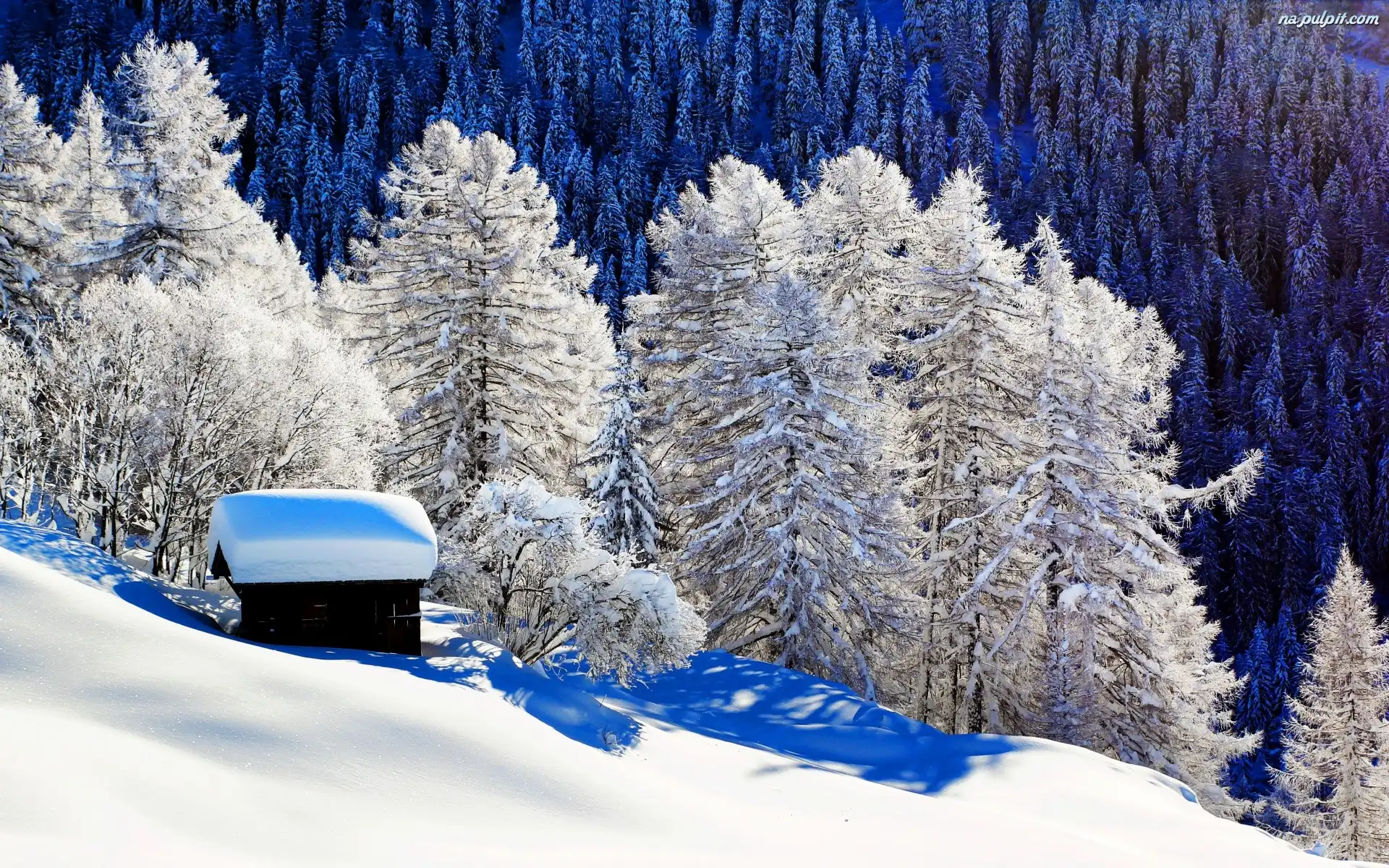 Świerki, Las, Drzewa, Dom, Góry, Zima, Ośnieżone Na Pulpit