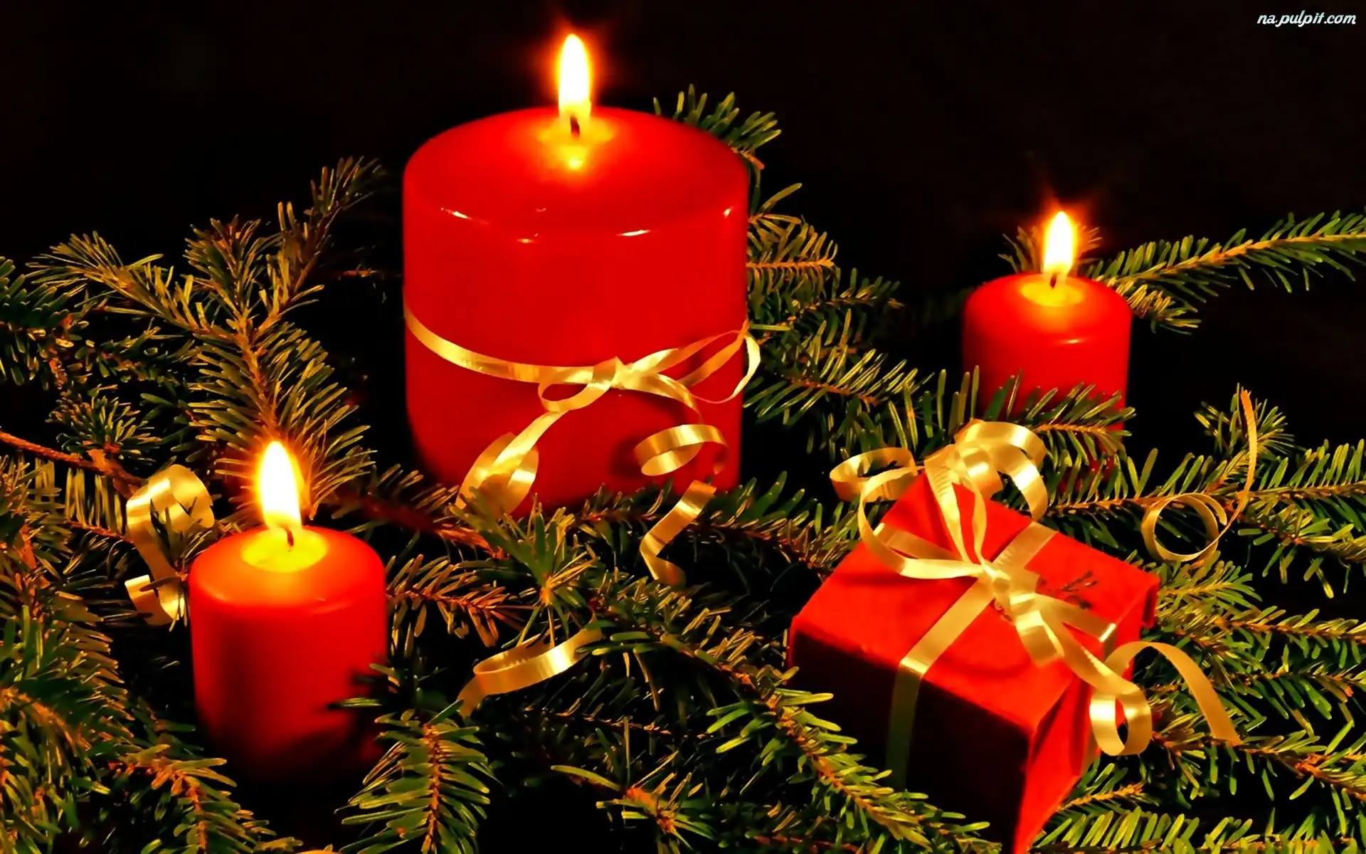 Świerkowe, Prezent, Świeczki, Boże Narodzenie, Gałązki