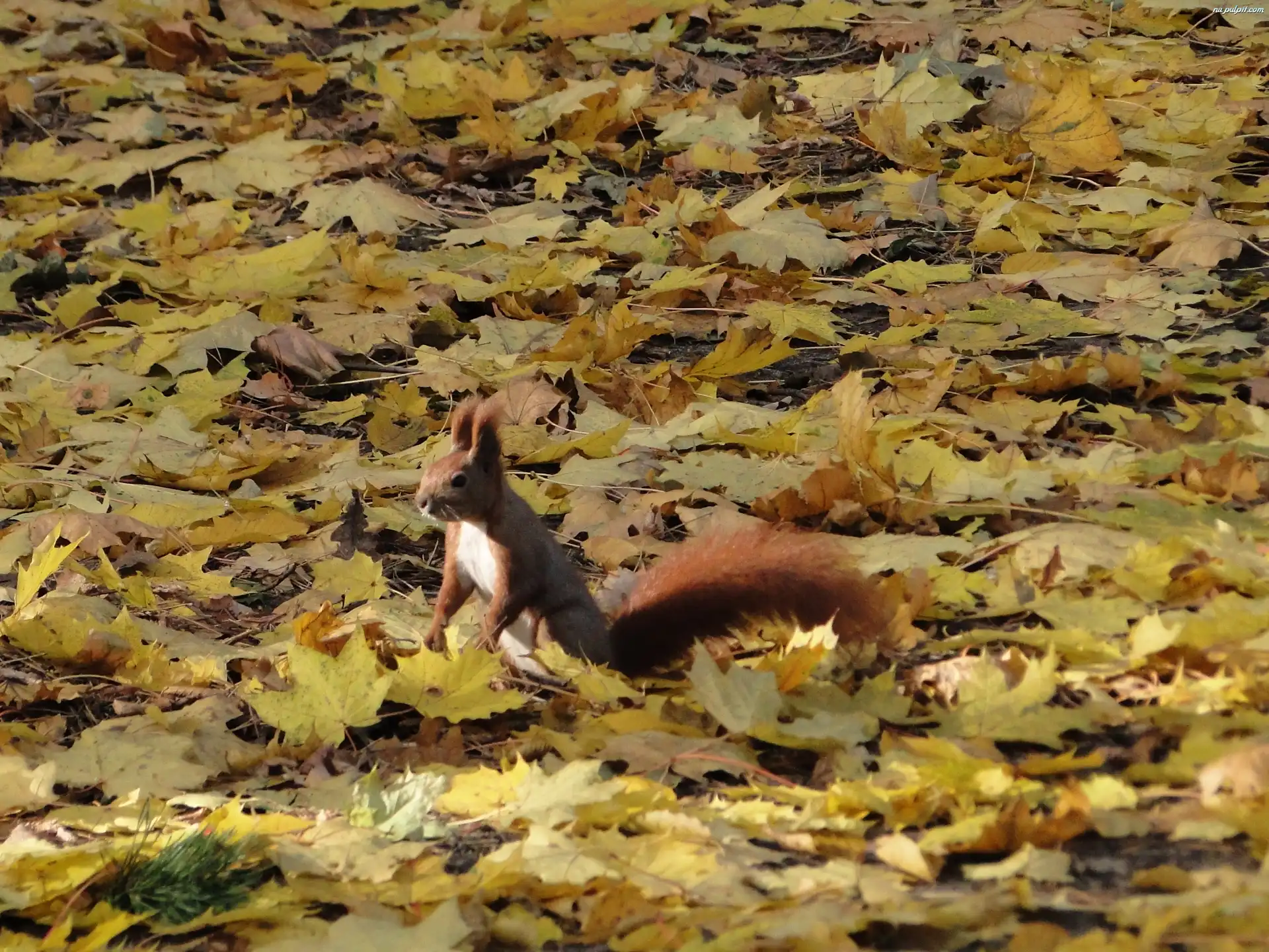 Jesień, Wiewiórka, Liście