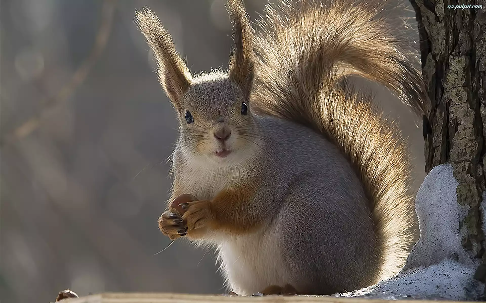 Śnieg, Wiewiórka, Drzewo