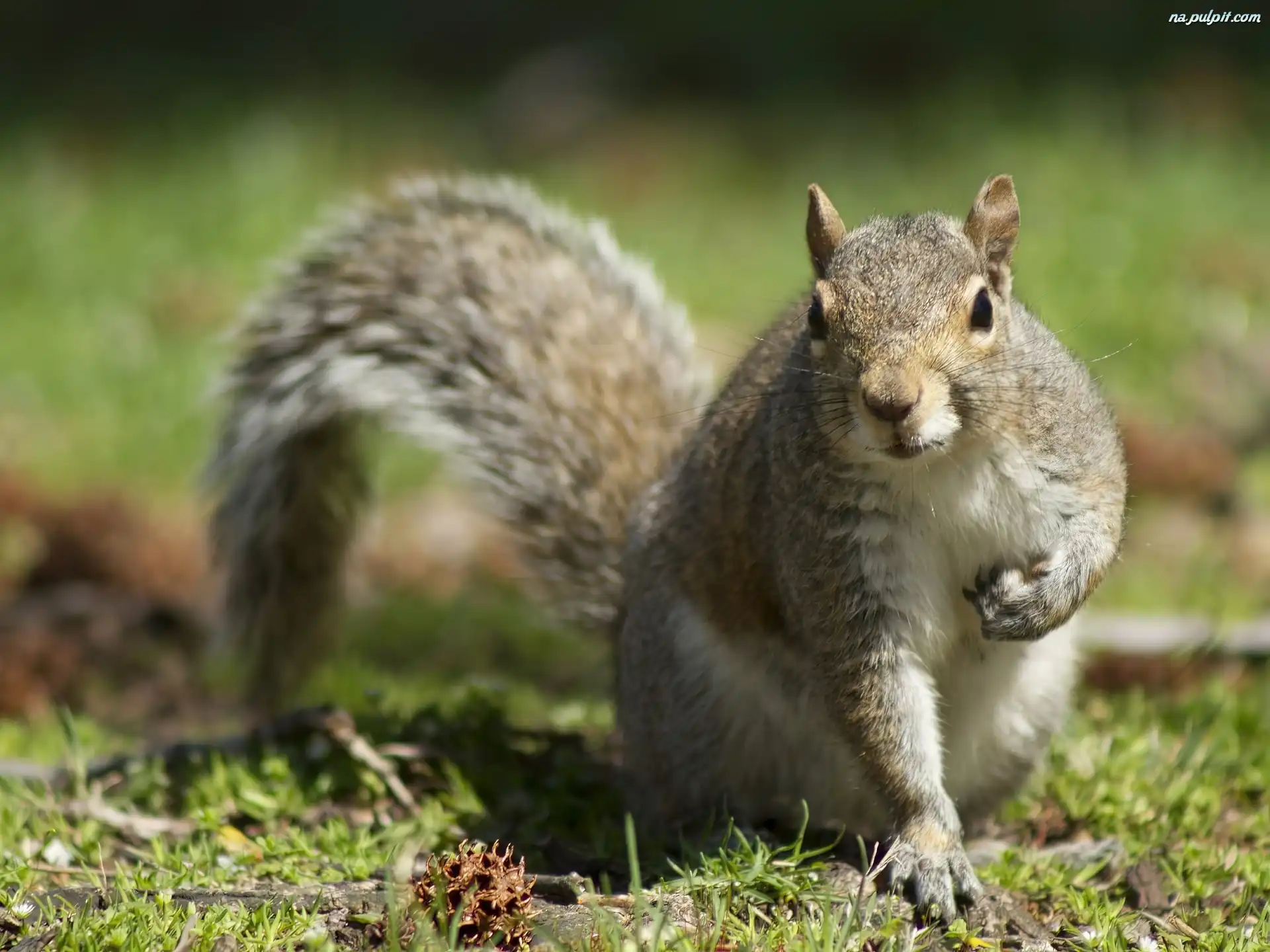 Trawa, Wiewiórka, Liście Na Pulpit